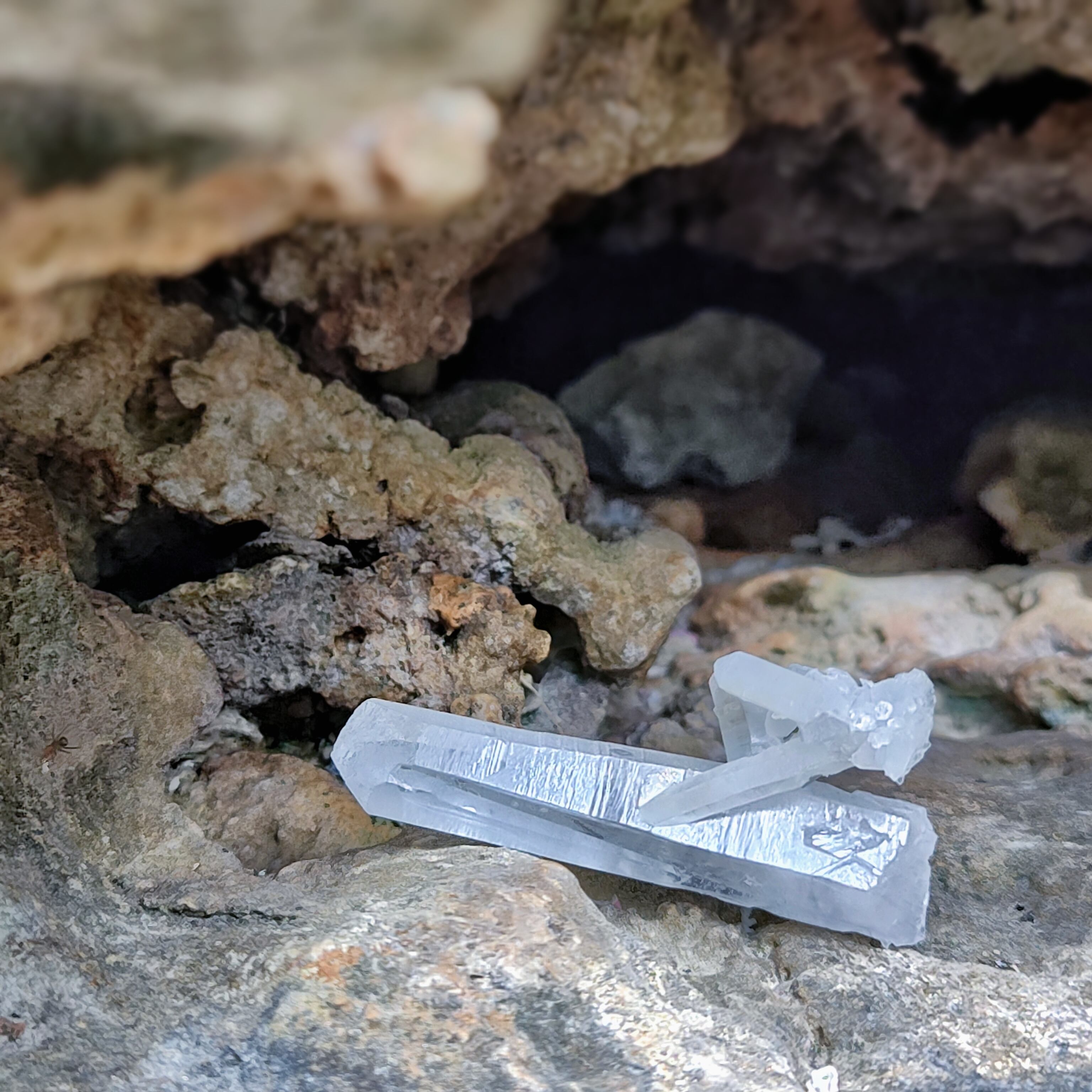 希少価値の高い照り艶良く、透明感高くて、レムリアンシードのクラスターです。氷のような美しさを纏い、横に刻まれた水晶の成長線であって、小さいクォーツが 群がっている、不可思議なパワーを持っているようです。