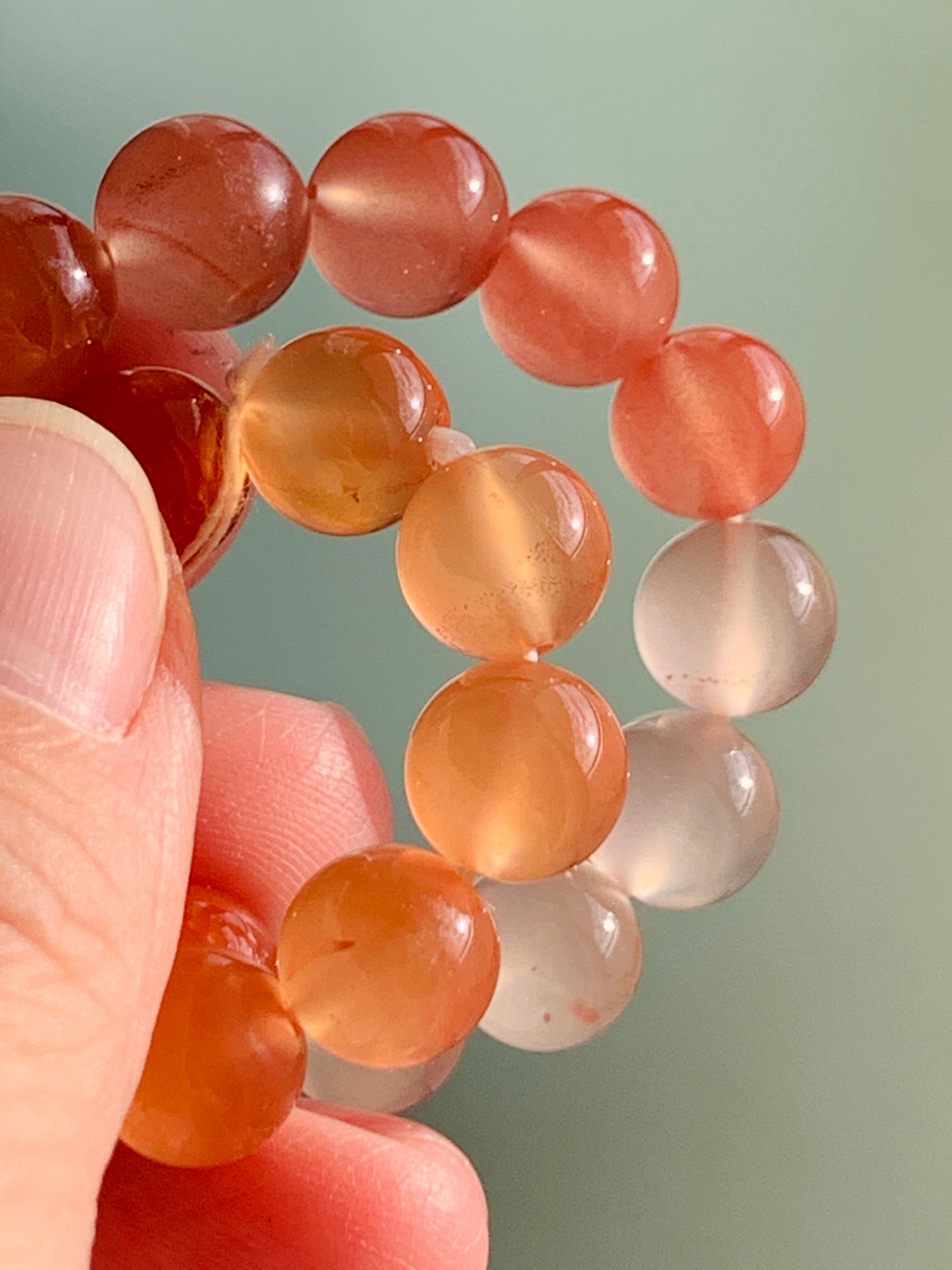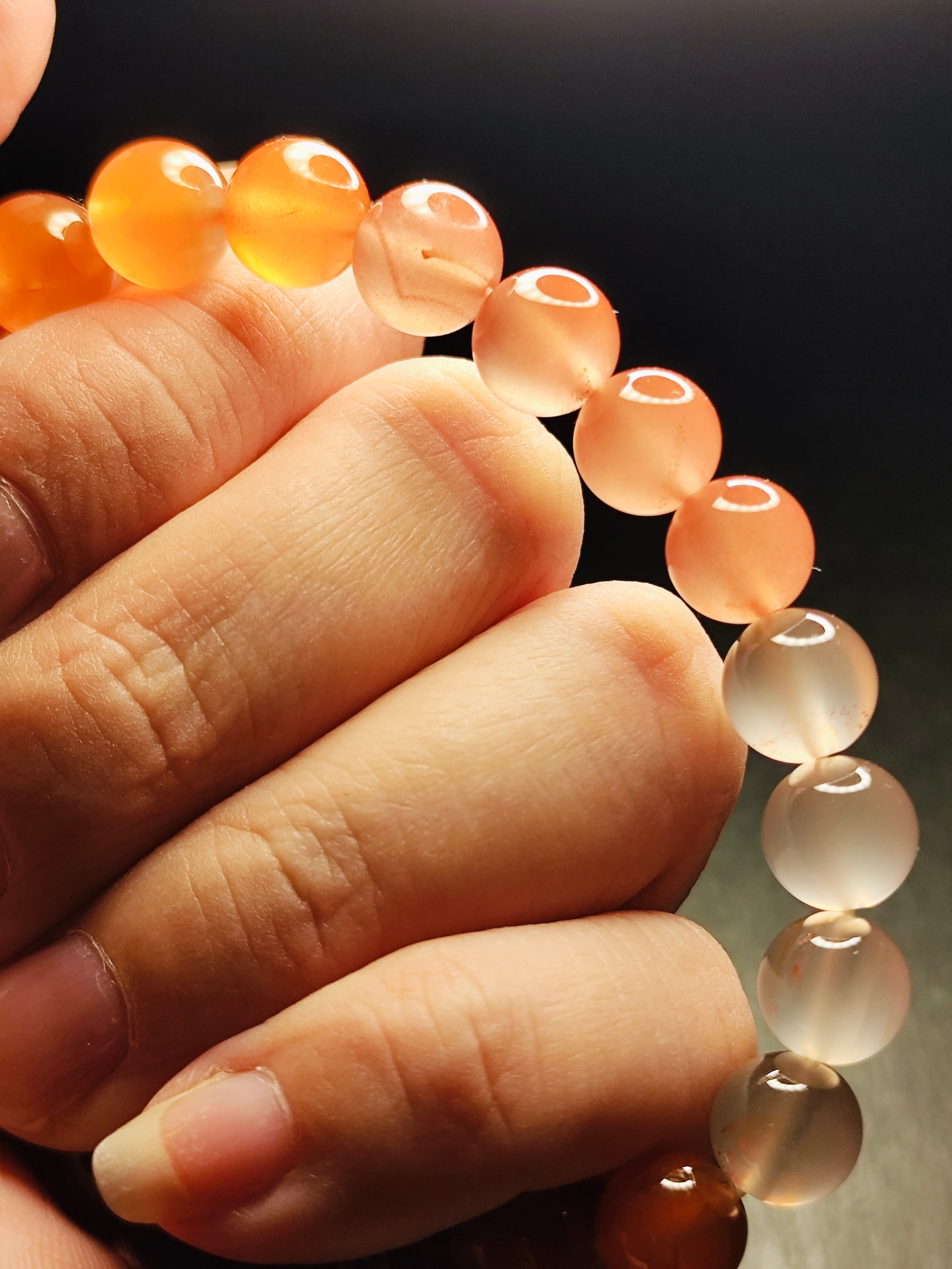 仏教七宝の瑪瑙です。不思議で濃厚な柿色、ピンク、赤,透明感が高くてが、レインボーのようのブレスレット、昔から癒しの石と言われています⚜️