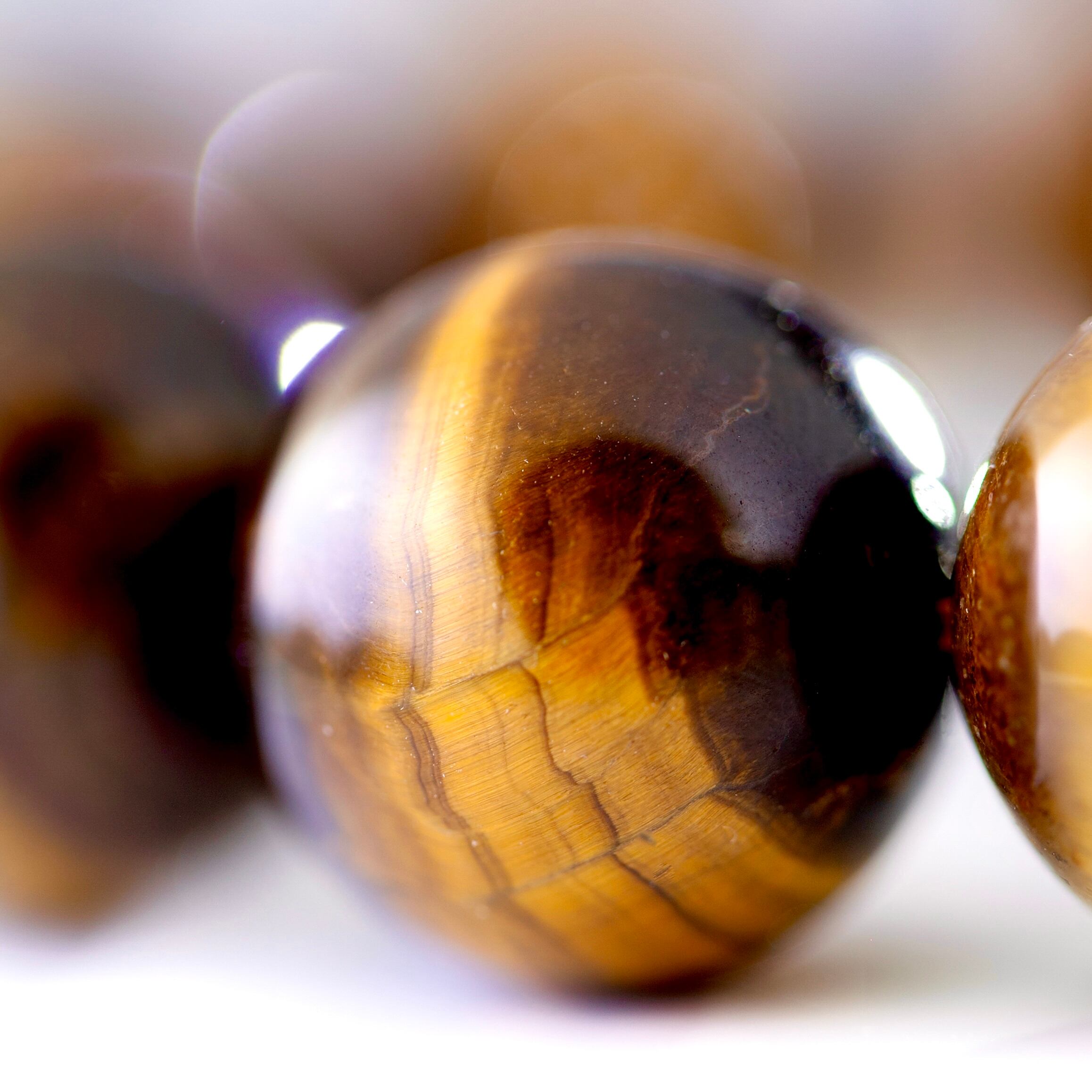 高品貭、超大粒、金運と富の虎目石(タイガーズアイのパワーストーン)ブレスレット。17.9mm。