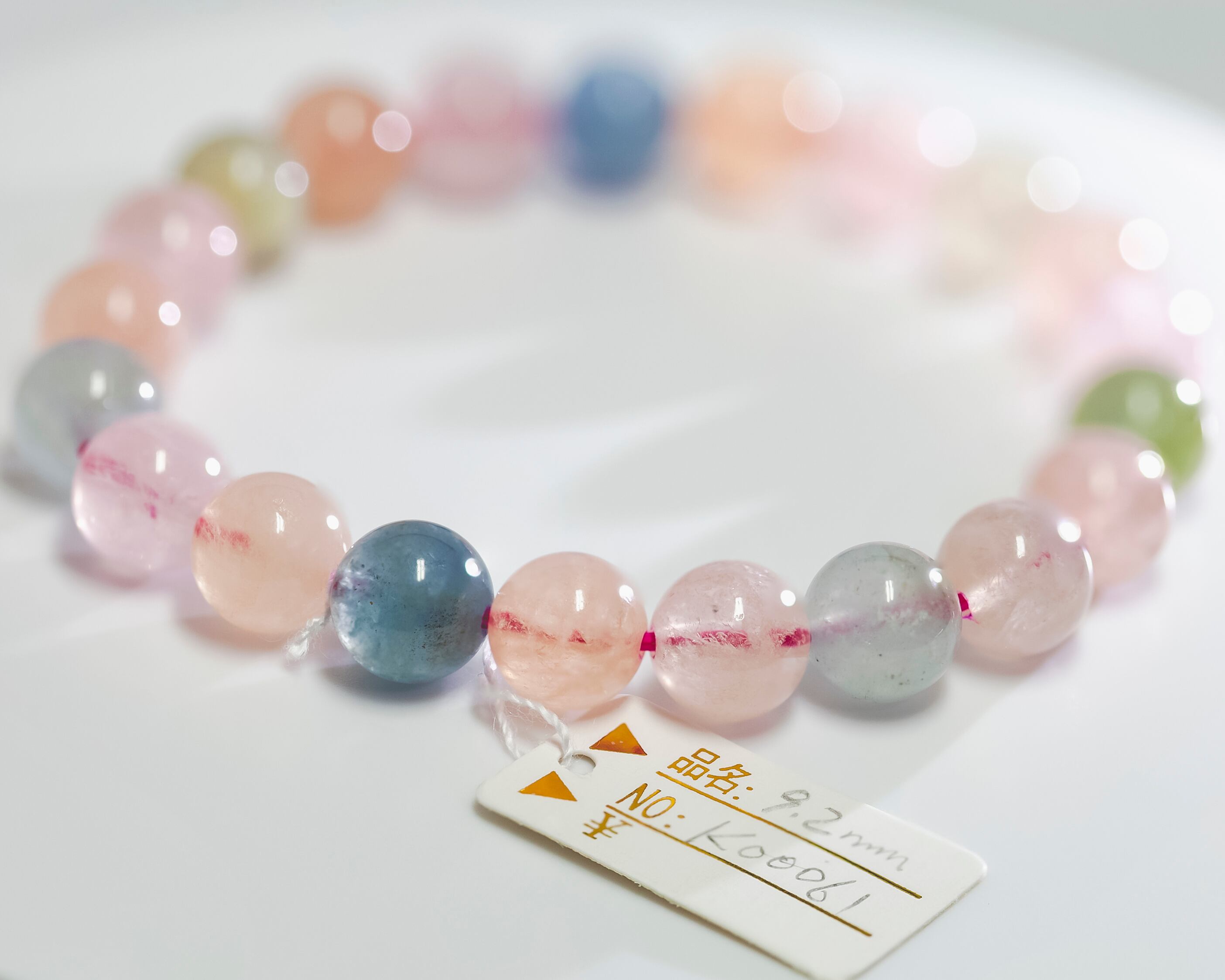 ◆超キュート◆ モルガナイト/ベリル 9.2ミリ K00061 パワーストーンブレスレット 天然石ブレスレット