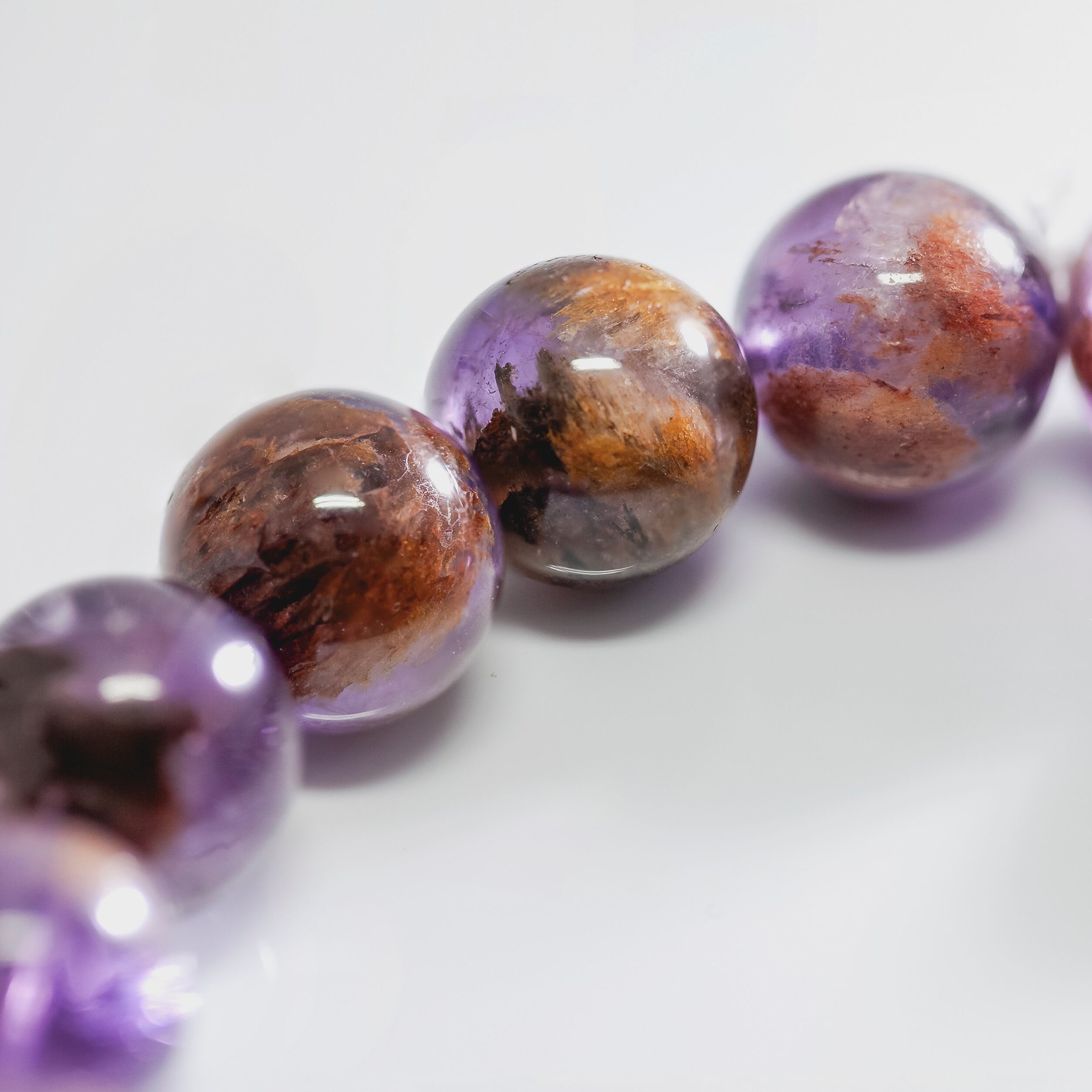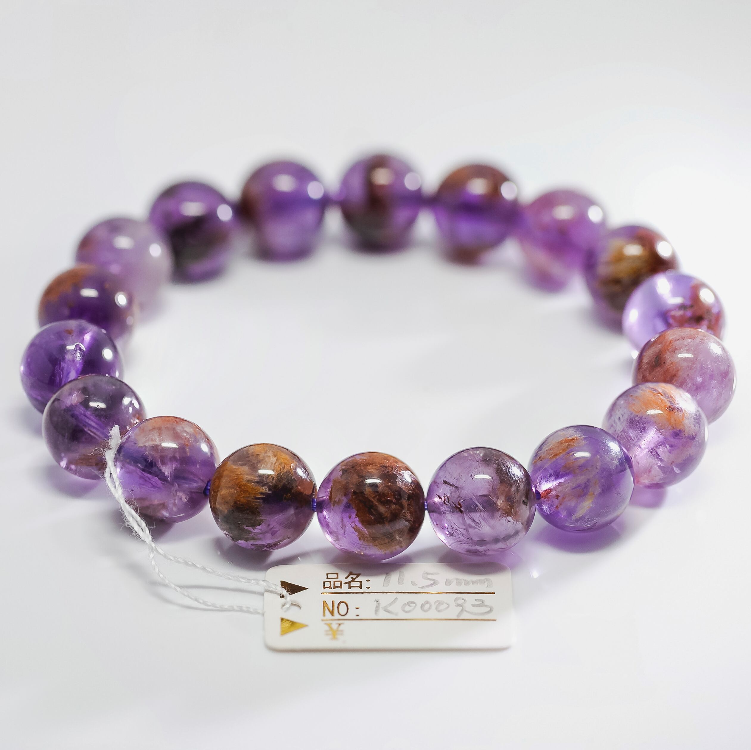 ◆高品貭◆ カコクセナイトインエレスチャルアメジストガーデンクォーツ 11.6mm K00093 天然石ブレスレット パワーストーンブレスレット