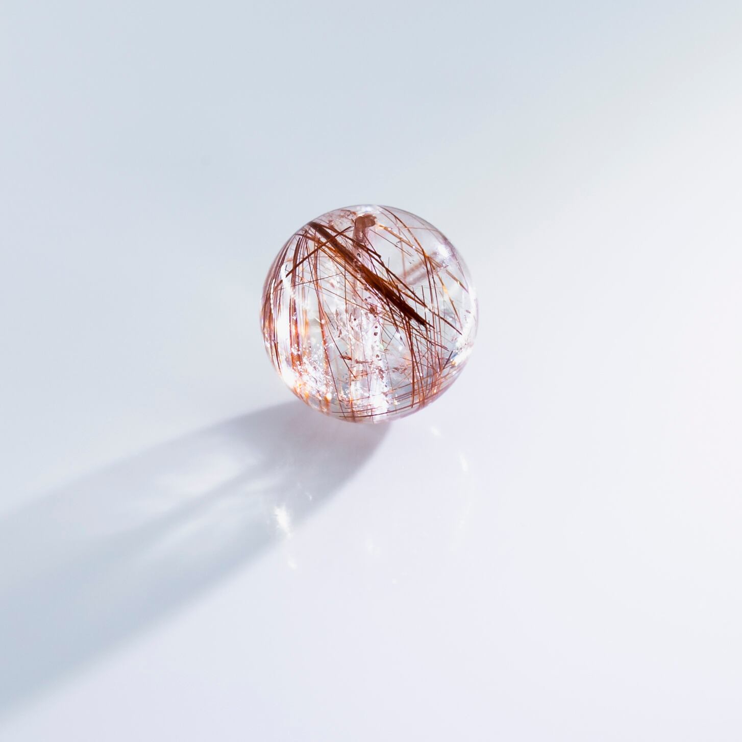 ◆発色拔群◆超透明◆虹◆超美結晶体◆ブラウンルチルクォーツ 13ミリ K00169 天然石丸玉 パワーストーン