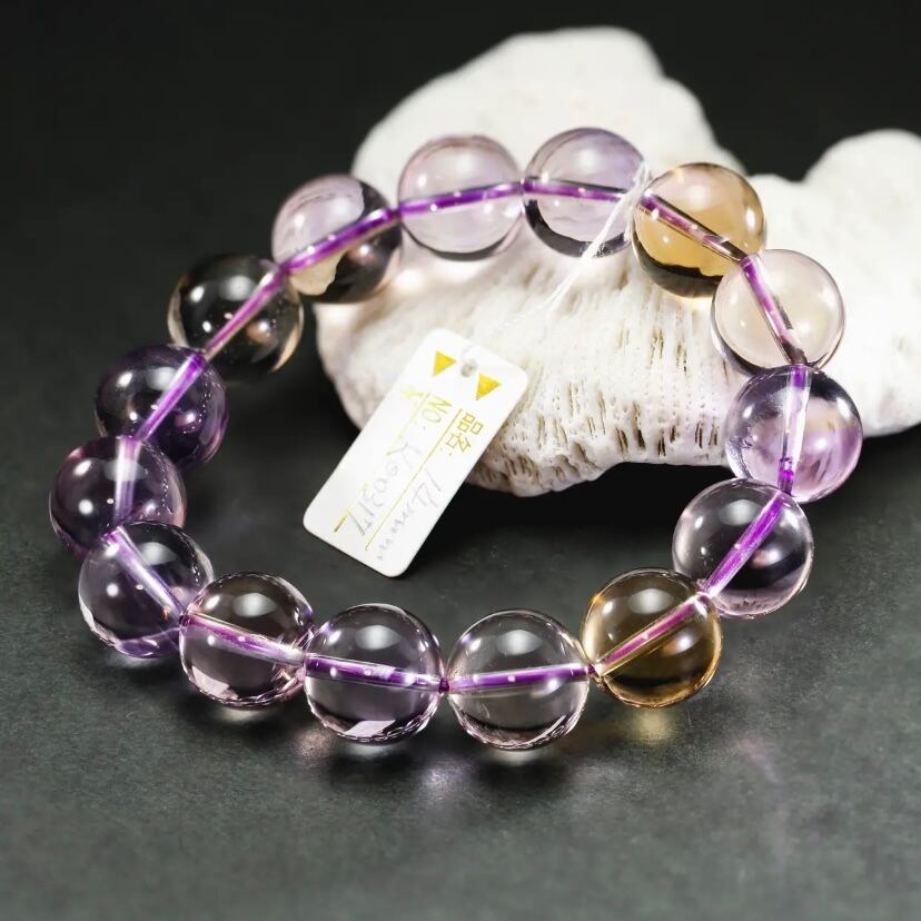 ◆ブラジル產◆極上品◆宝石質◆恋愛運◆アメトリン 14mm K00317 天然石ブレスレット パワーストーンブレスレット