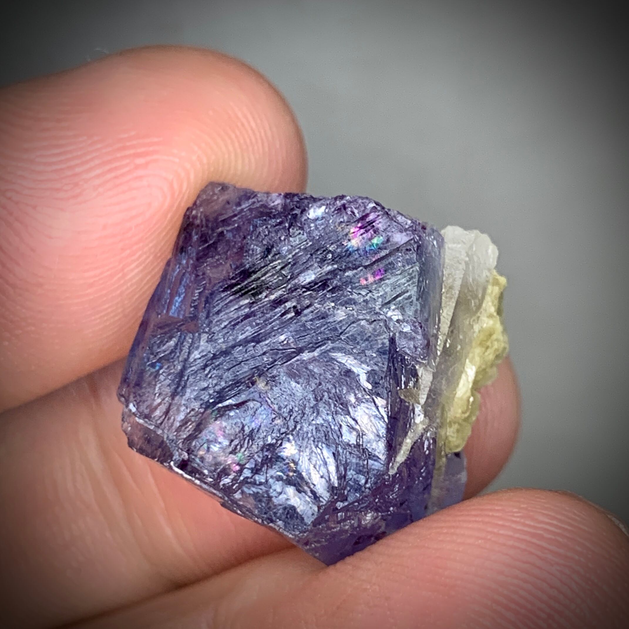 パープルと青い単結晶としては、透明感とテリが共に非常に素晴らしい、虹があったの鉱物標本です。