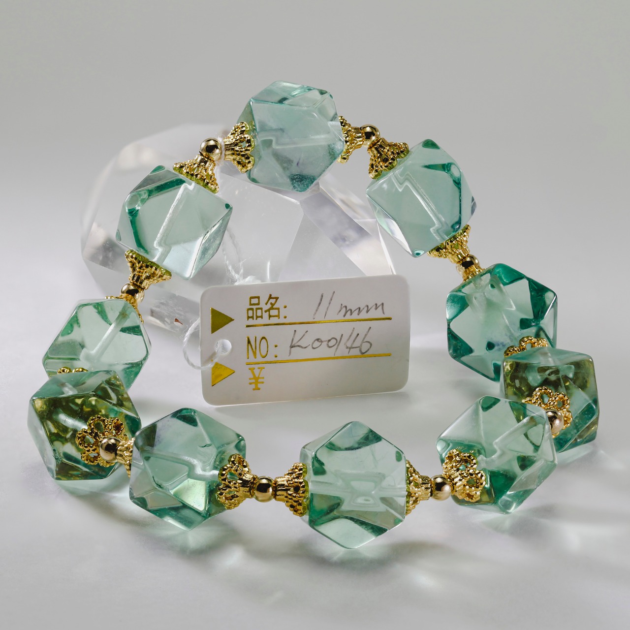 グリーンフローライト◆超透明◆極上品◆発色抜群◆11mm K00146 天然石ブレスレット パワーストーンブレスレット