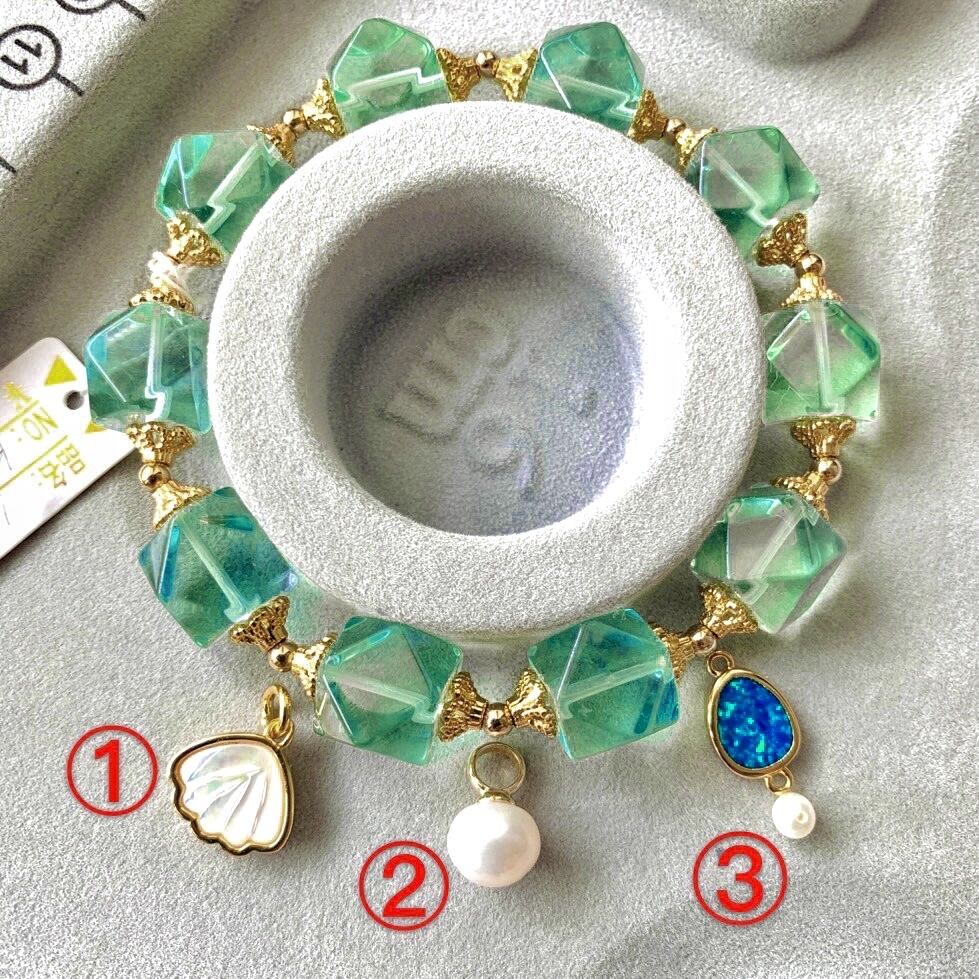 透明感のあるみずみずしいフローライト、とても可愛いブレスレットになりますね。つやつやのグリーンがとにかく綺麗!癒し効果抜群です✨