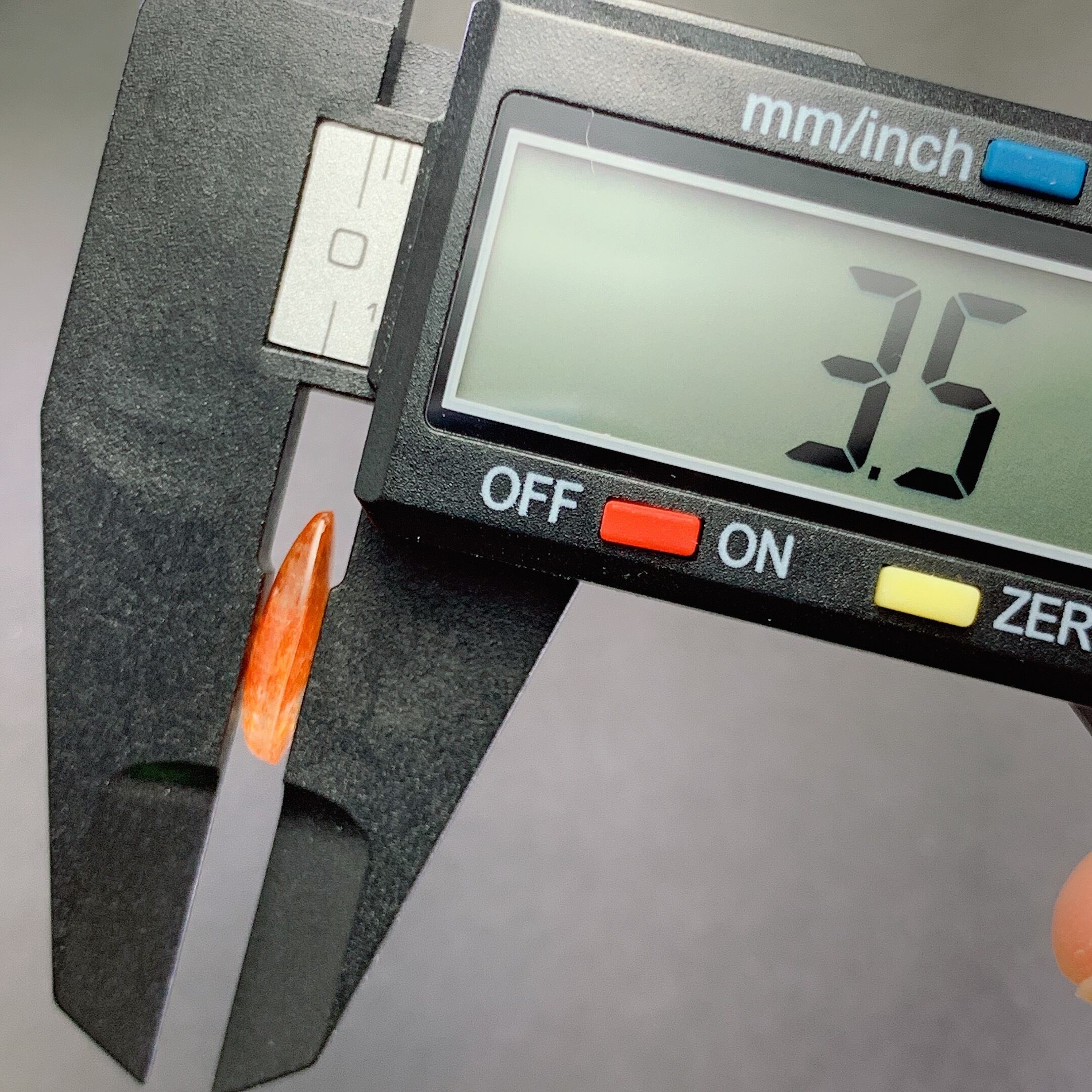 希少な燃える様な赤オレンジ色の雫型結晶です。アベンチュリンレッセンスがフルに詰まった希少な一品です。