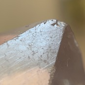こちらクォーツには、レコードキーパー(Record Keeper)の特徴があります。水晶の先端部(ファセット、錐面)に三角形▲の凹凸が見られるものをレコードキーパーといいます。とても希少です。