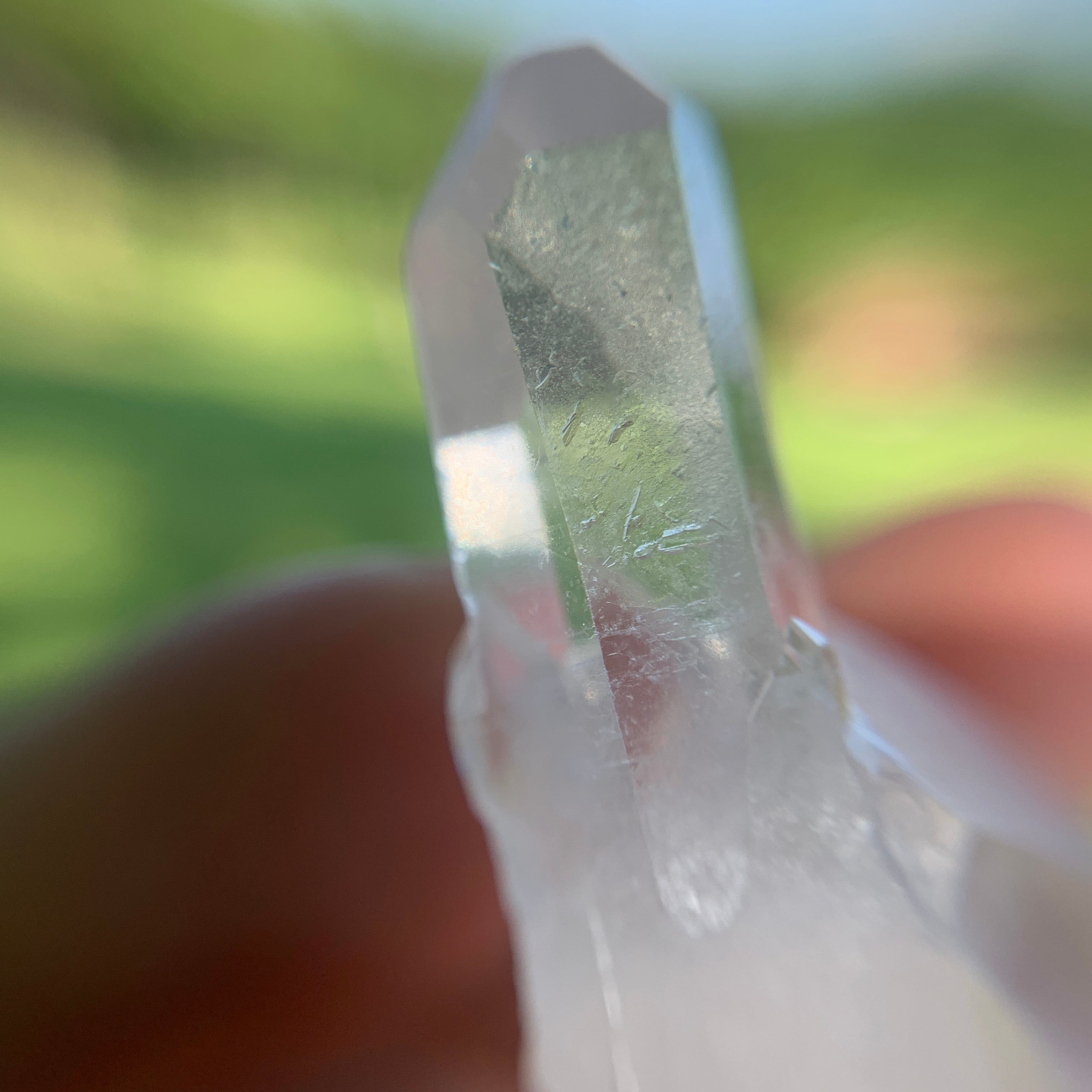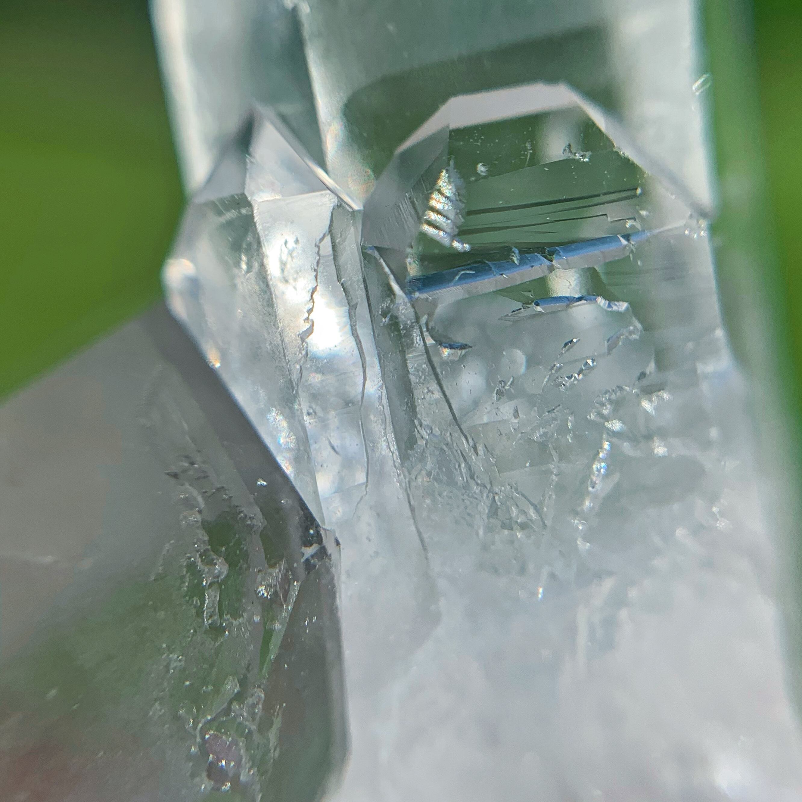 透明感がある、大変美しいクォーツになっております。こちらの成長干渉水晶(Growth Interference)は、幾多の結晶が絡み合う形成されます。虹ちゃんがあります、美しい姿に。