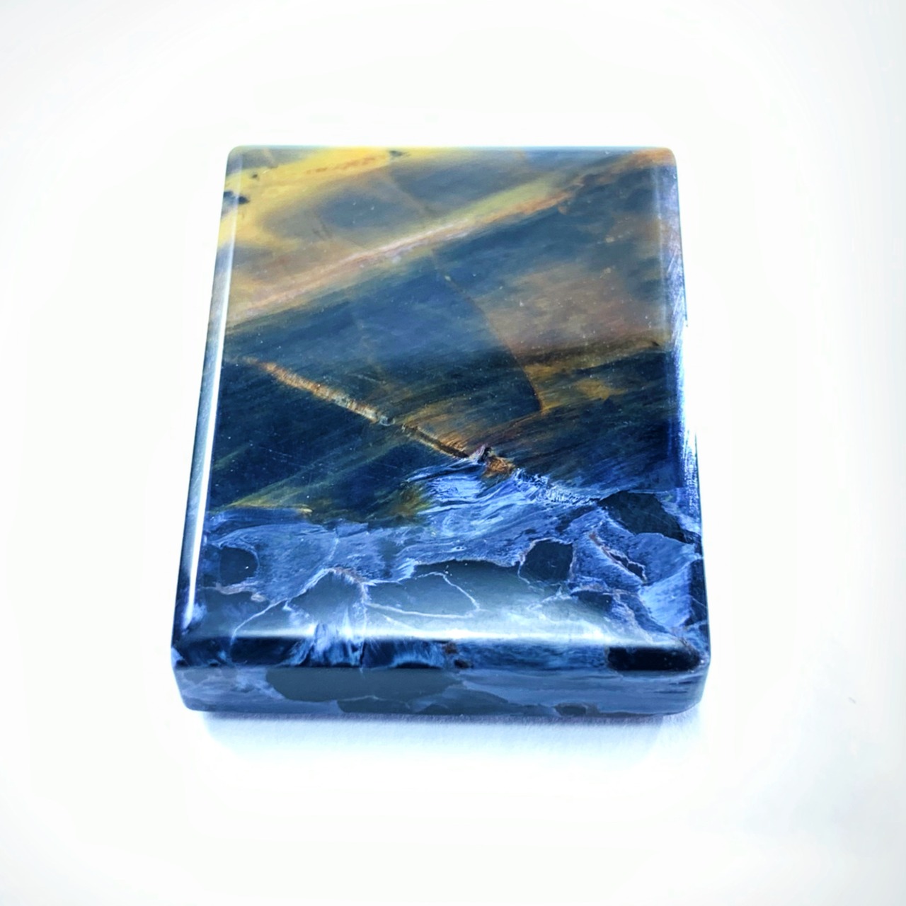 南アフリカ産のピーターサイトは希少価値があります。高品質で美しい、産出量が少ない。テリ、輝き、色合い、どこをとってもすべてが格段に美しいのです。南アフリカ産ピーターサイトは、美しいゴールド&ブルーの混合された2色が特徴です。他の産地と比べと違いますよ。