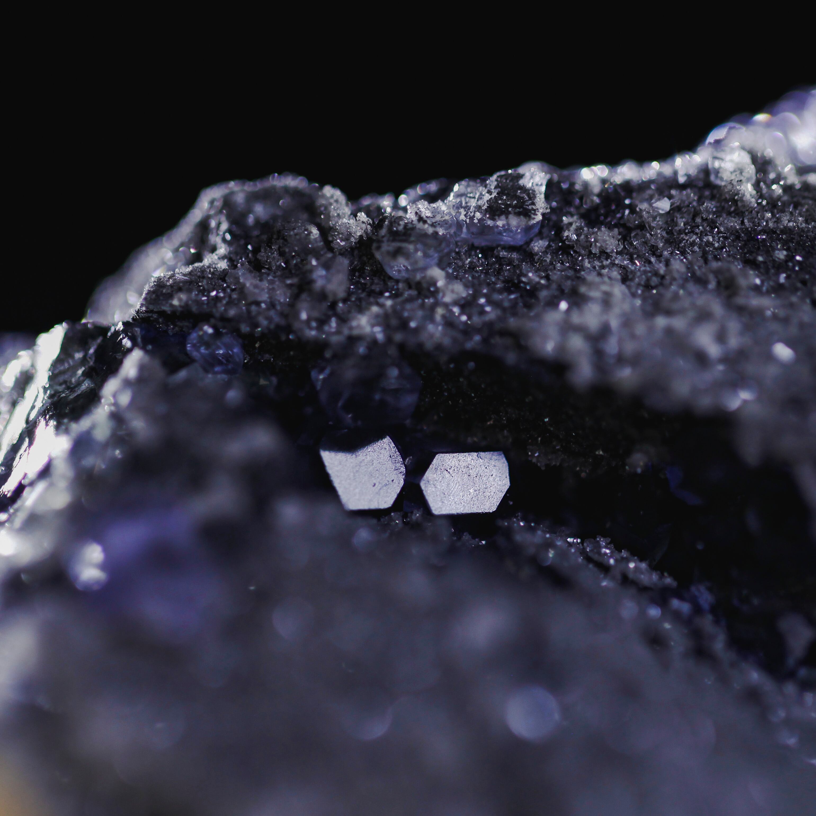 こちらの深いパープルのフローライトは母岩の中に隠れていて、宝物のようです。蛍石の自然の中での原生状態がよく展示されています。テリが非常にクリアでも強い良結晶が見られる景色と、色々な角度から楽しめる鉱物標本です。