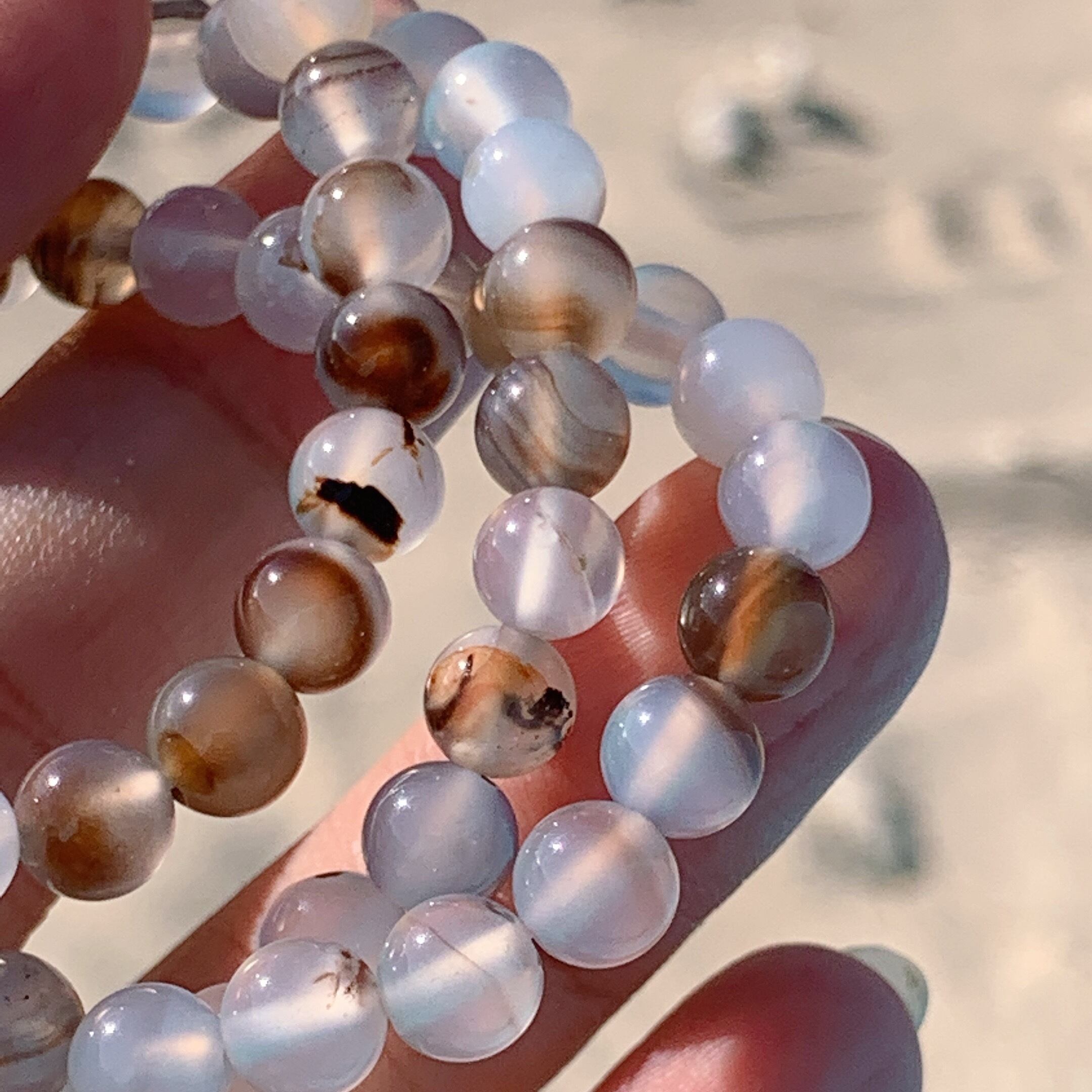 モンタナアゲート 3連 6.4mm K00404-1◆透明感◆魔除けの石◆ 天然石ブレスレット パワーストーンブレスレット
