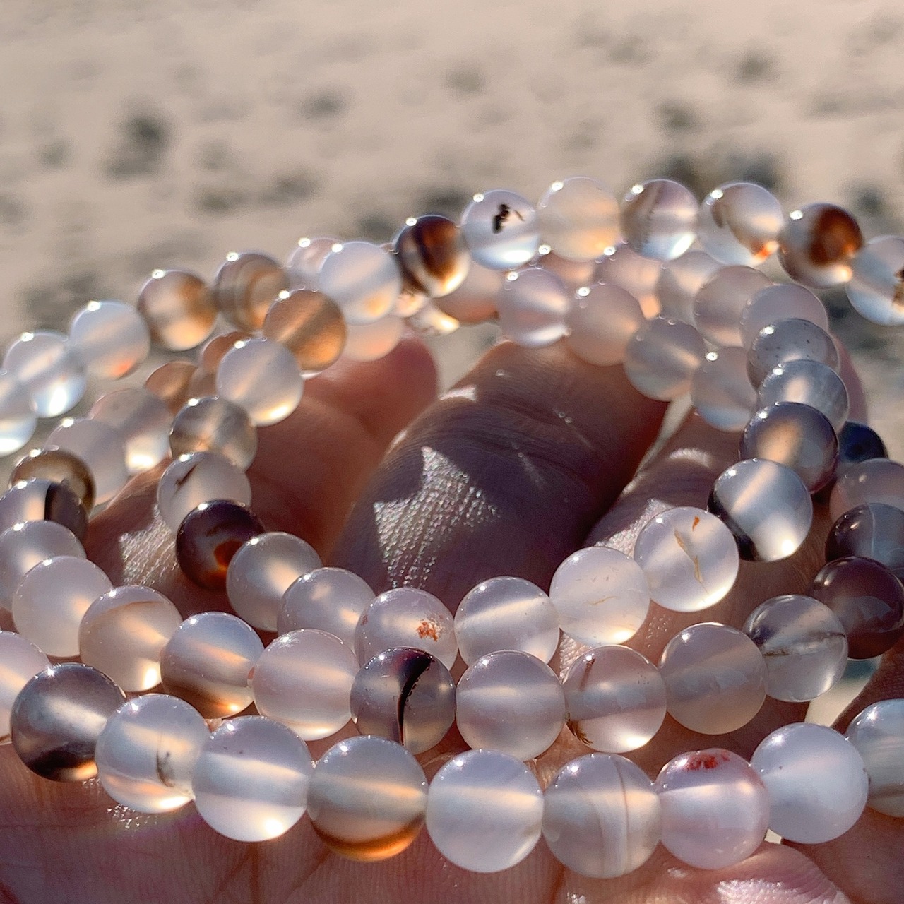 こちらはモンタナ產アゲート。一粒一粒が本当に多彩で、純粋で、また全く違う表情をもっております。