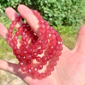水晶に真っ赤なマンガンエピドートが含まれたのストロベリークォーツ。女性にとっては最高の守り石の一つで、愛と美を象徴する石です。