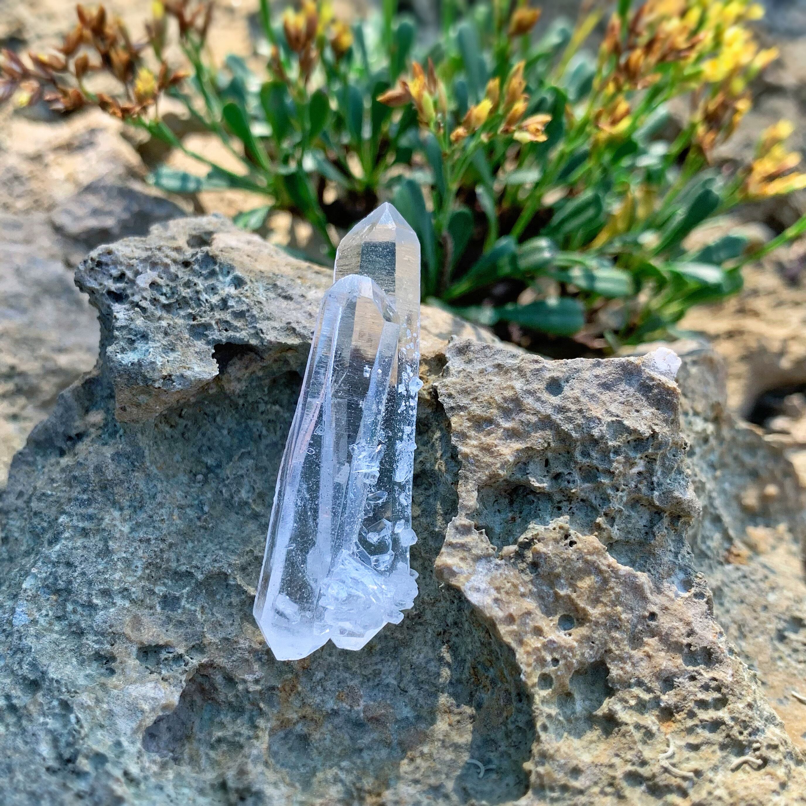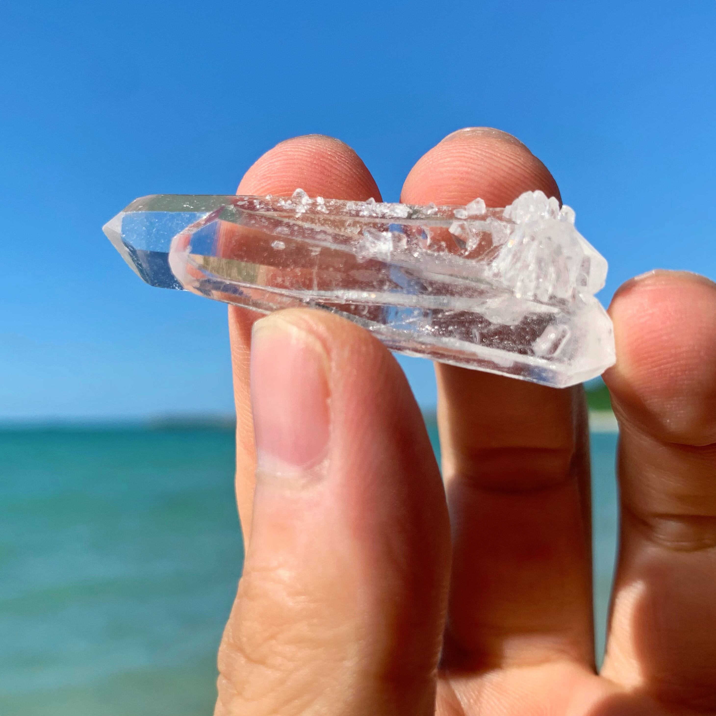 透明度高い、大変美しいクォーツになっております。二つのシングルポイントがくっつき並んで育っている。ダブルターミネーテッドですので、クォーツ2つ石柱の両端から同時にパワーを放出し、吸収すると言われています。