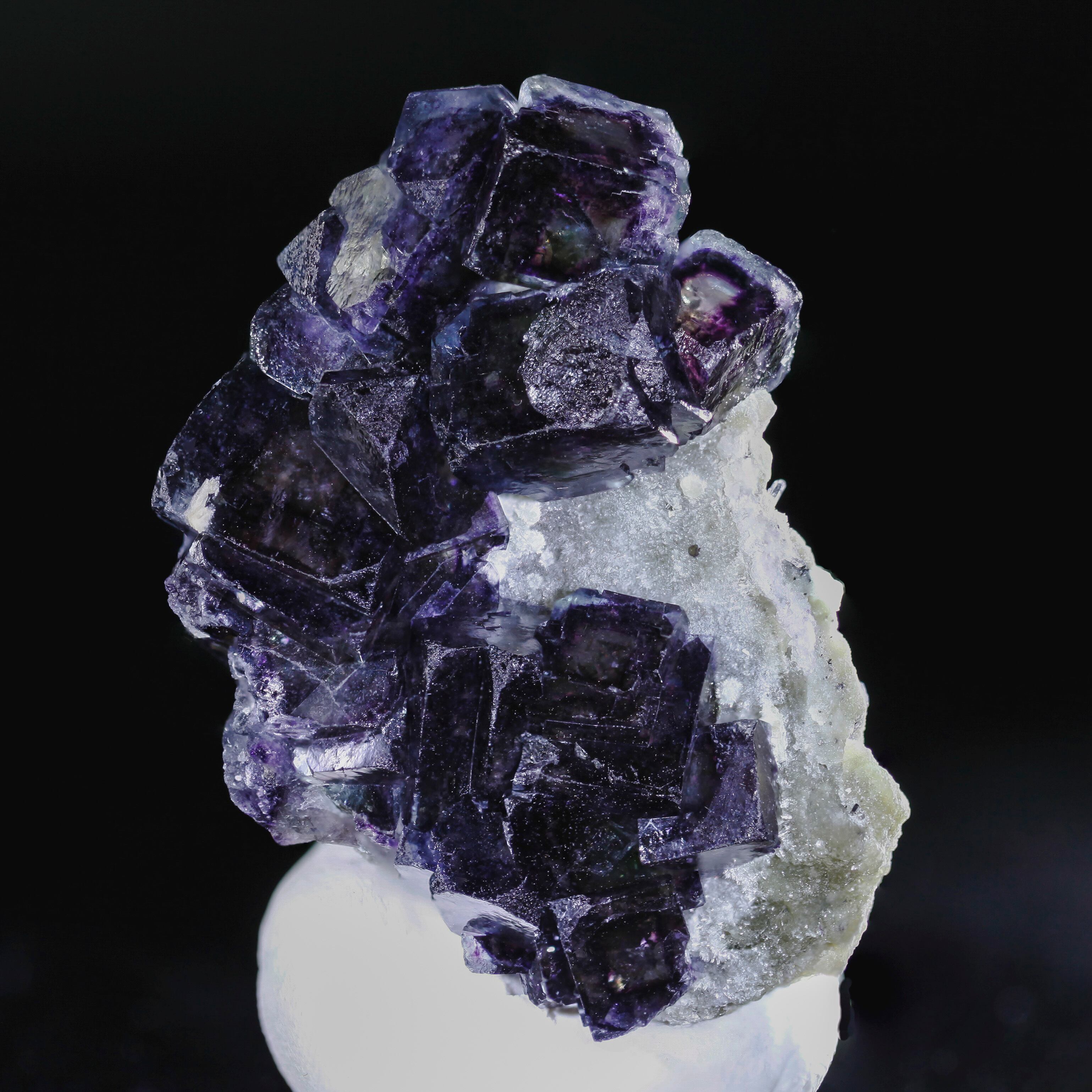 こちらはフローライトとカルサイト共生した鉱物標本です。テリが非常にクリアでも強い良結晶が見られる景色と、色々な角度から楽しめる鉱物標本です。
