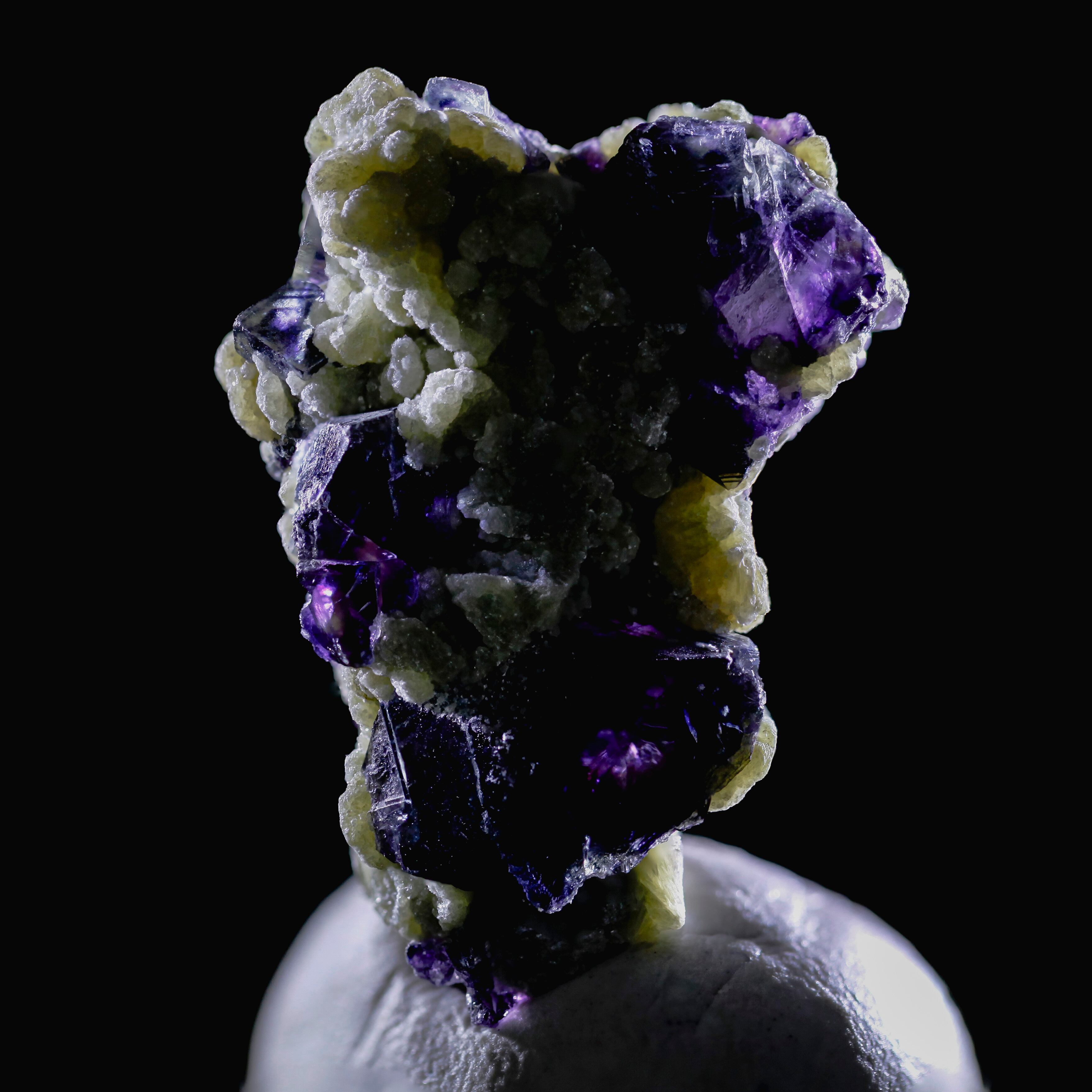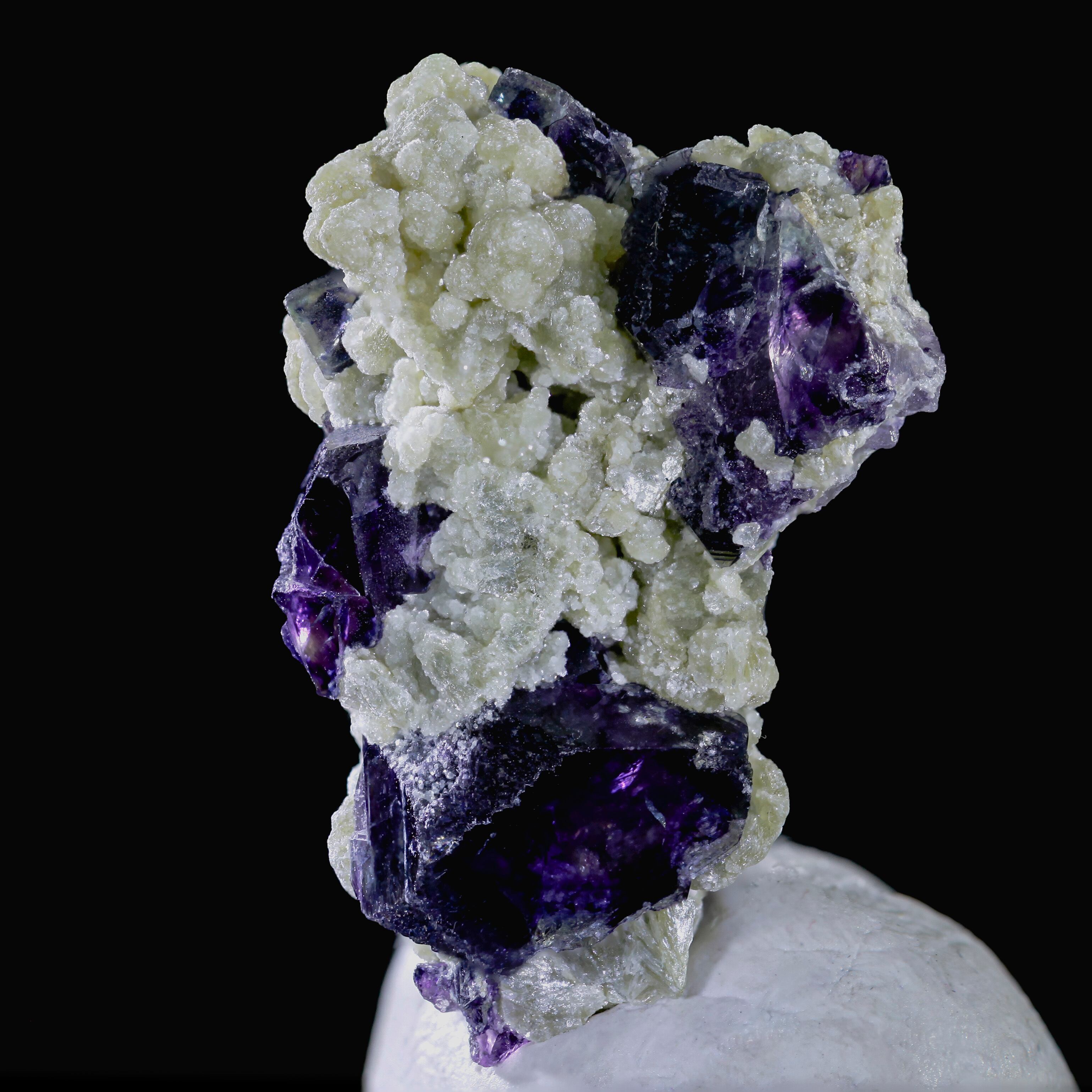 こちらはフローライトとカルサイト共生した鉱物標本です。テリが非常にクリアでも強い良結晶が見られる景色と、色々な角度から楽しめる鉱物標本です。