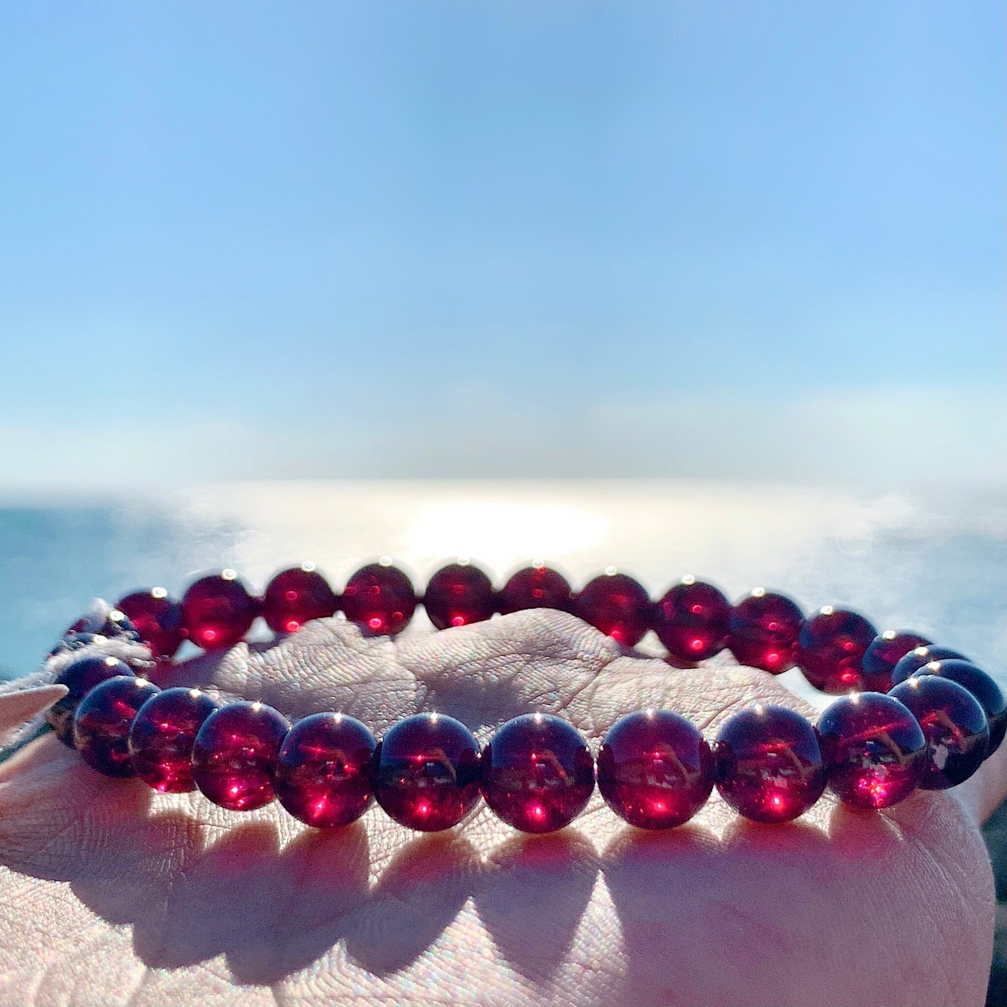 ロードライトガーネット 7.3mm ◆キラキラ◆宝石質◆濃い色◆K00392 天然石ブレスレット パワーストーンブレスレット
