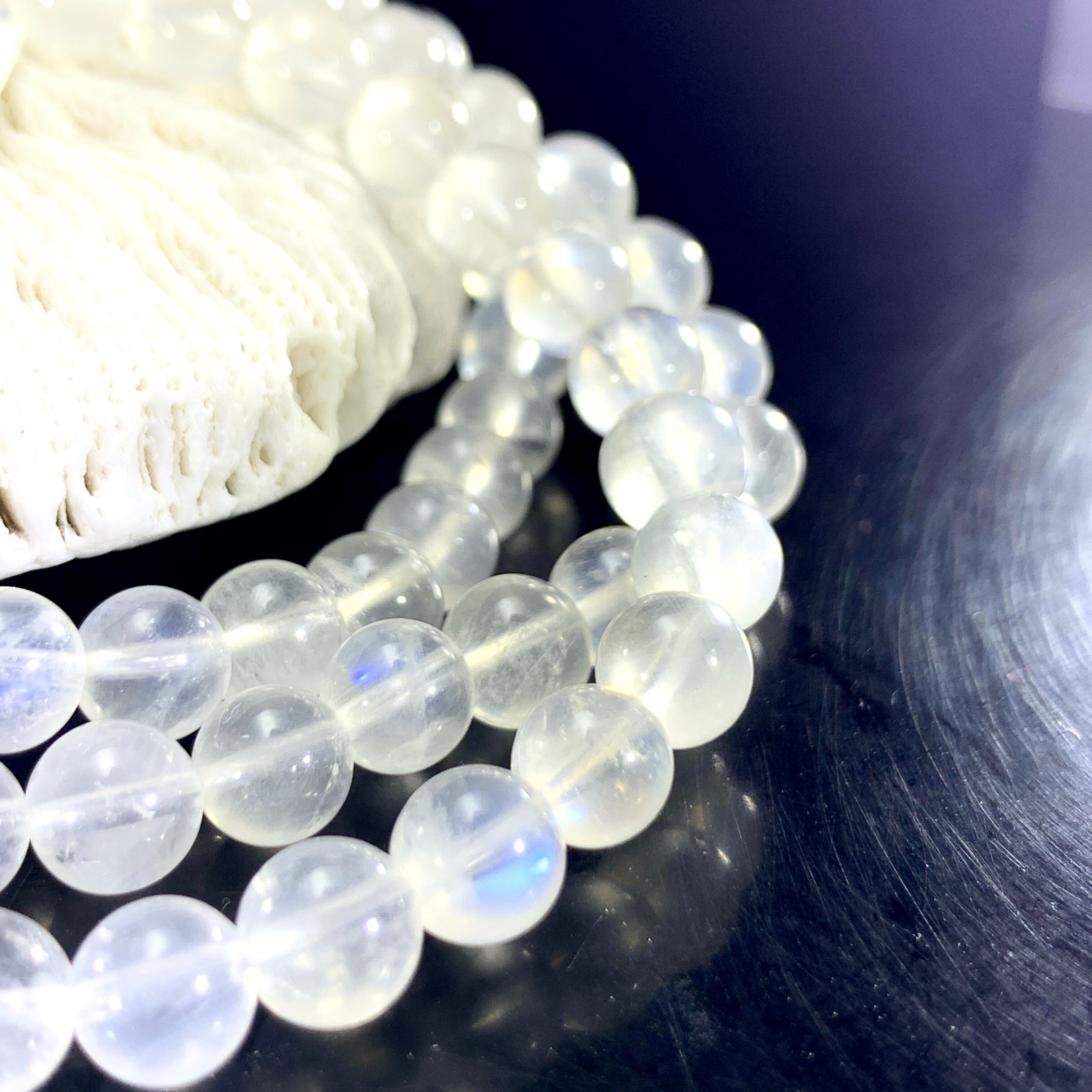 6月の誕生石はムーンストーン3連ブレスレット。透明感が高く綺麗なブルーのシラーが輝く、強いキャットアイ効果に見える。持ち主を優しく大らかな愛情で満たしてくれるといわれています。