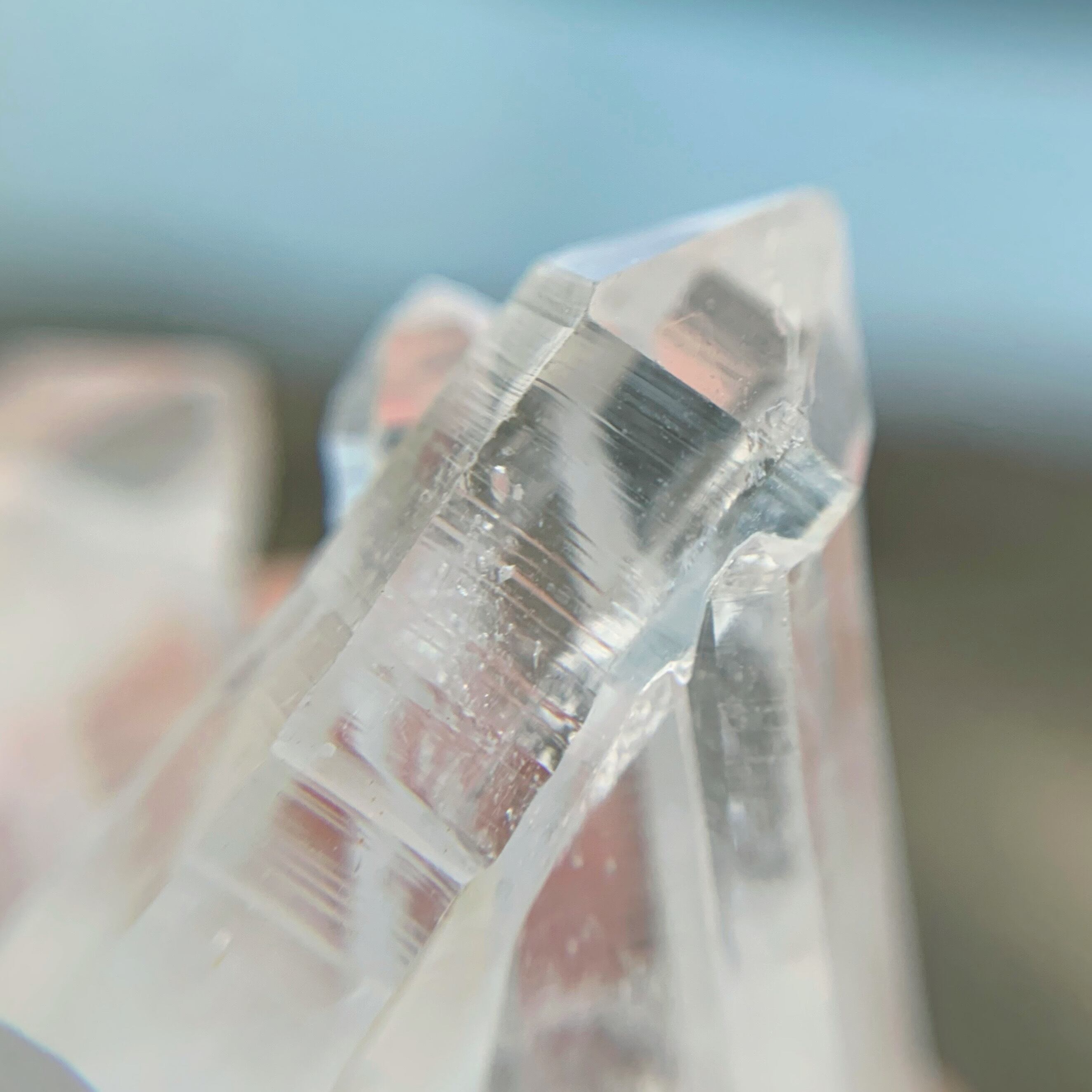 希少価値の高い照り艶良く、綺麗なクォーツクラスターです。レムリアンシードですので、氷のような美しさを纏い、横に刻まれたものバーコード(レコードキーパー)、神聖な輝きを放ちます。置物として、形がとても美しいです。