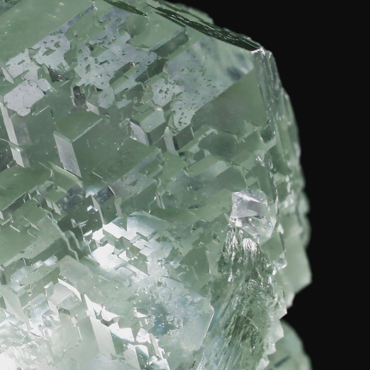 「天空の城」超クリアな薄いグリーンの美しいフローライトの鉱物標本です。見応えのあるステップ状結晶とアップルグリーンの爽やかな色合いが魅力的なフローライトです。