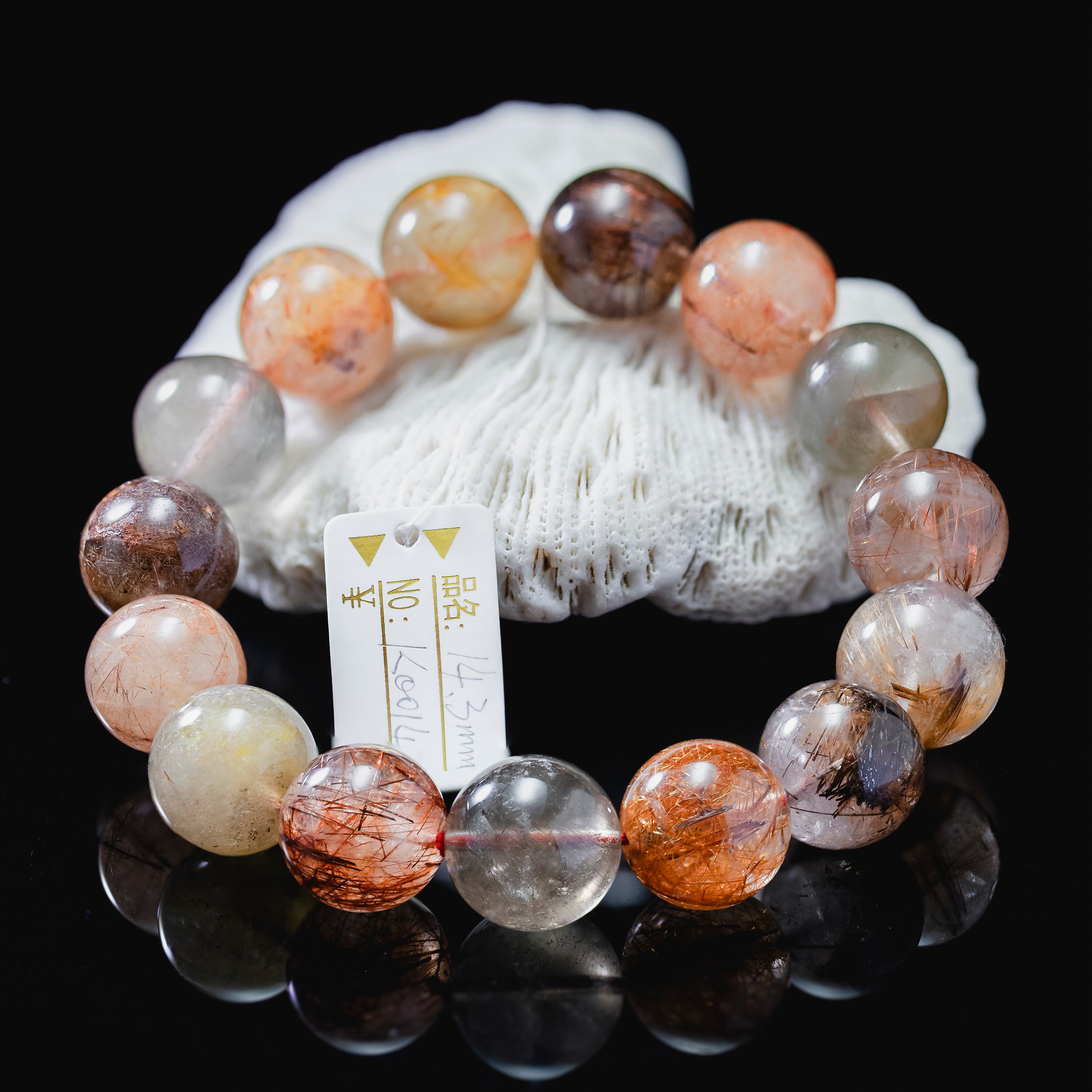 透明度が高い、繊細針の入ったお得なブレスレット、綺麗なミックスルチルクォーツ。こちらのブレスレットには、ブラウン色のルチルクォーツ達はとても美しくて、太陽の光に照らされて特に輝いています。