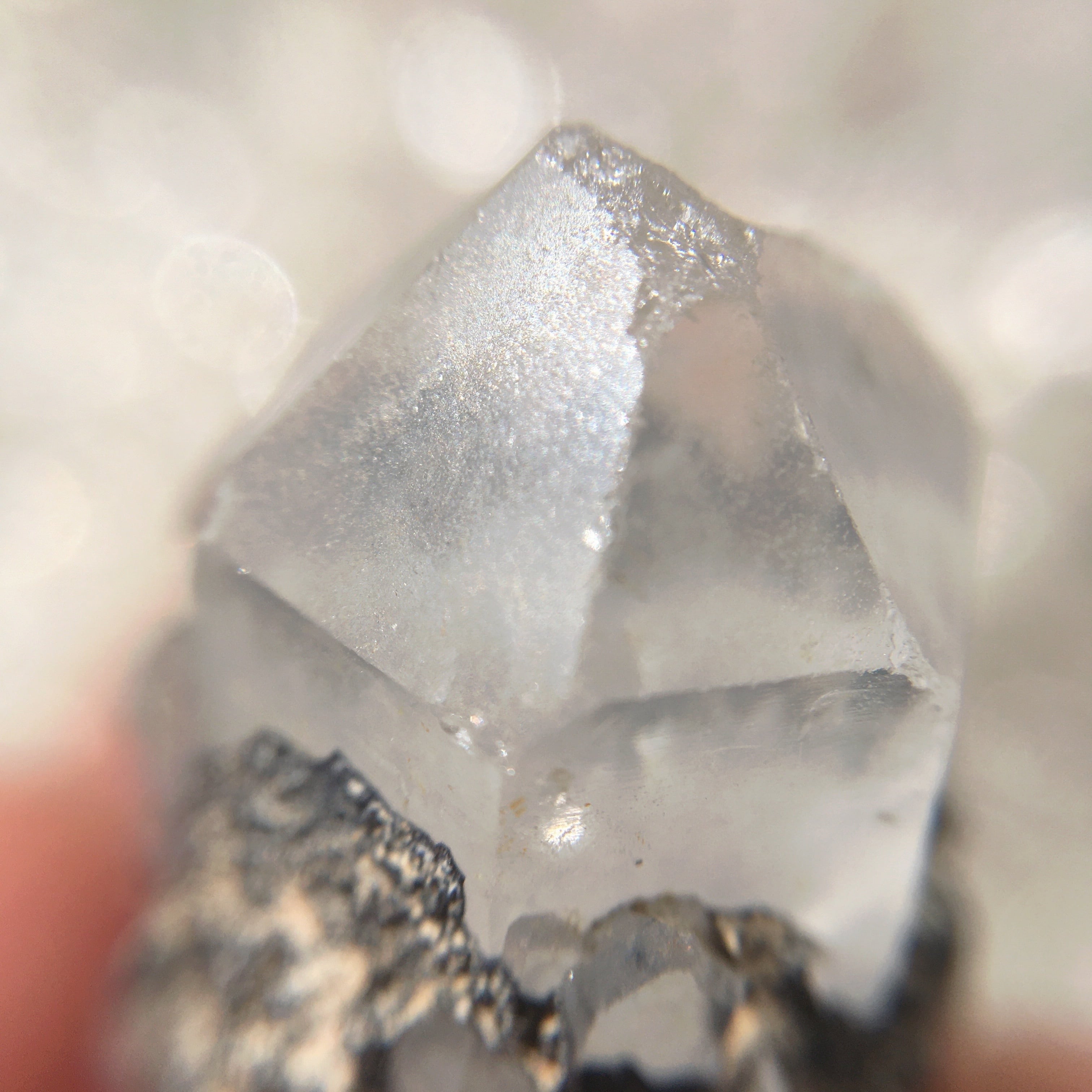 こちらはクンダリーニクォーツとタングステンの共生体。六角柱のクォーツをいっぱい小さなクォーツが囲む。表面にはタングステンが附着して、非常に珍しいです。