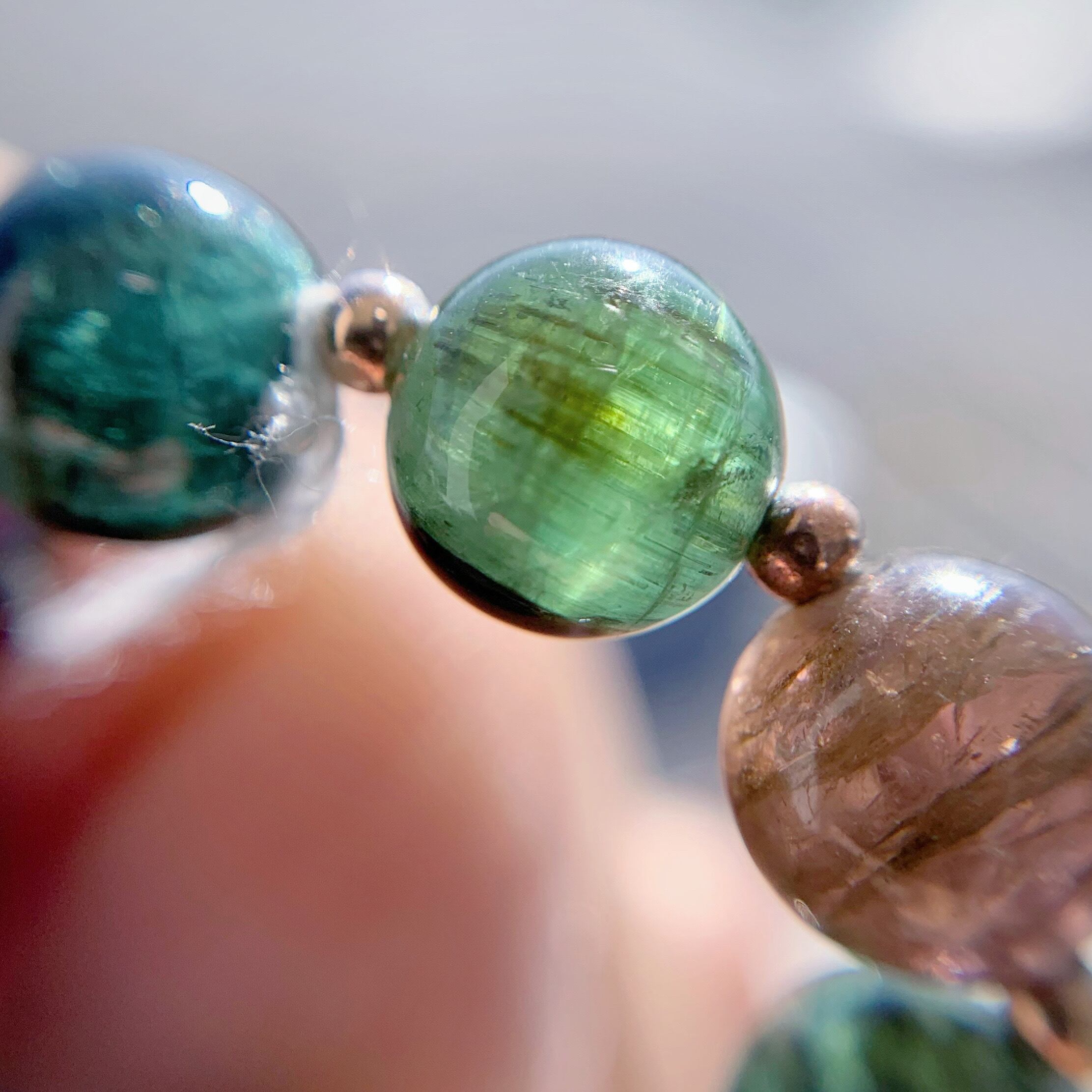 10月の誕生石、7.3ミリと10.2ミリのミックストルマリンです。濃厚のグリーン、イエロー、ブラウン、ブラック、ブルーのトルマリンを厳選しました。キャットアイの效果があるので、とても綺麗です。多種多様な色彩を持ち、カラーバリエーションの豊富さはパワーストーンの中でも随一と言われております。