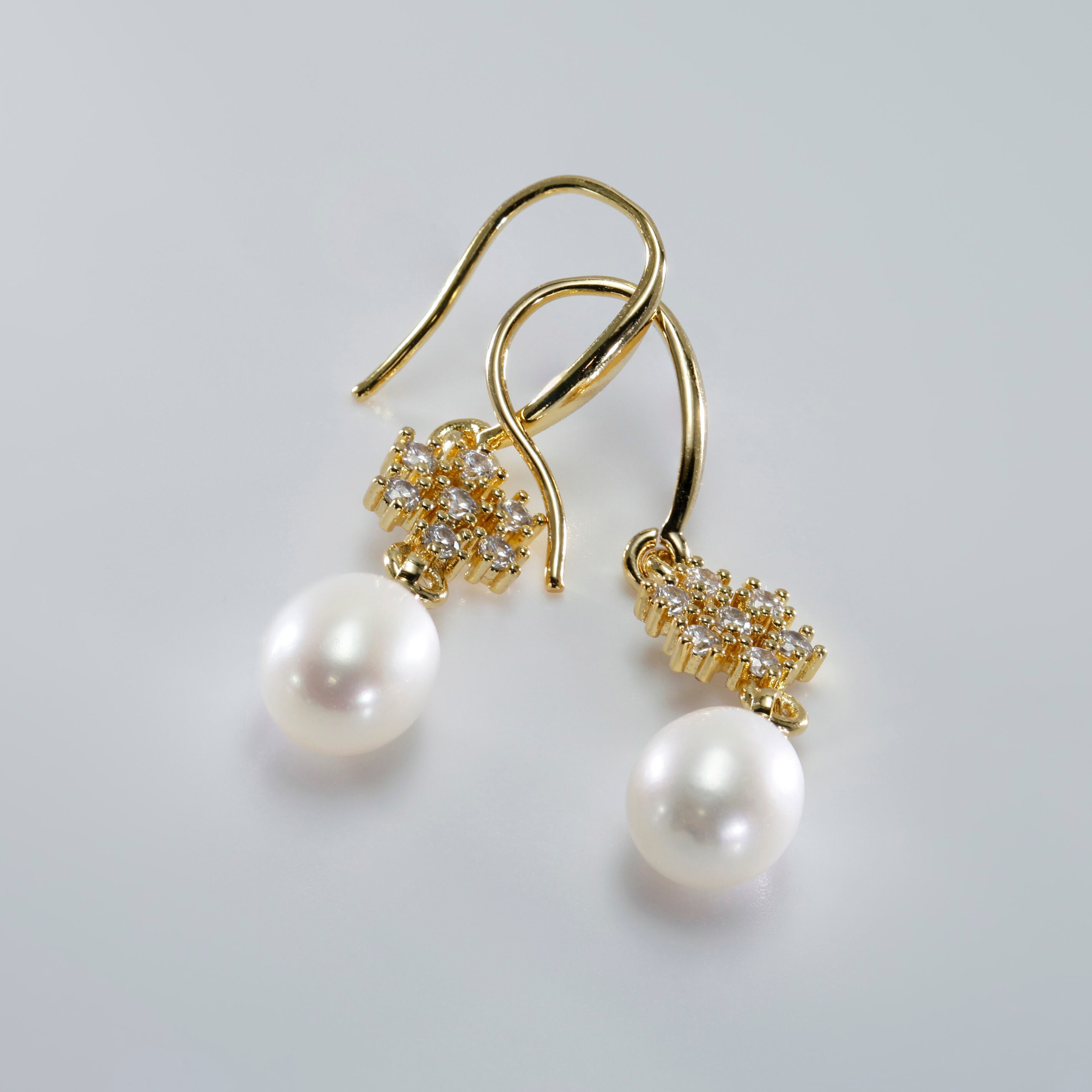 ゴールドの風花のようにデザイン摇れるホワイト淡水真珠イヤリングです。とても美しくて、冬によく似合うですね。
