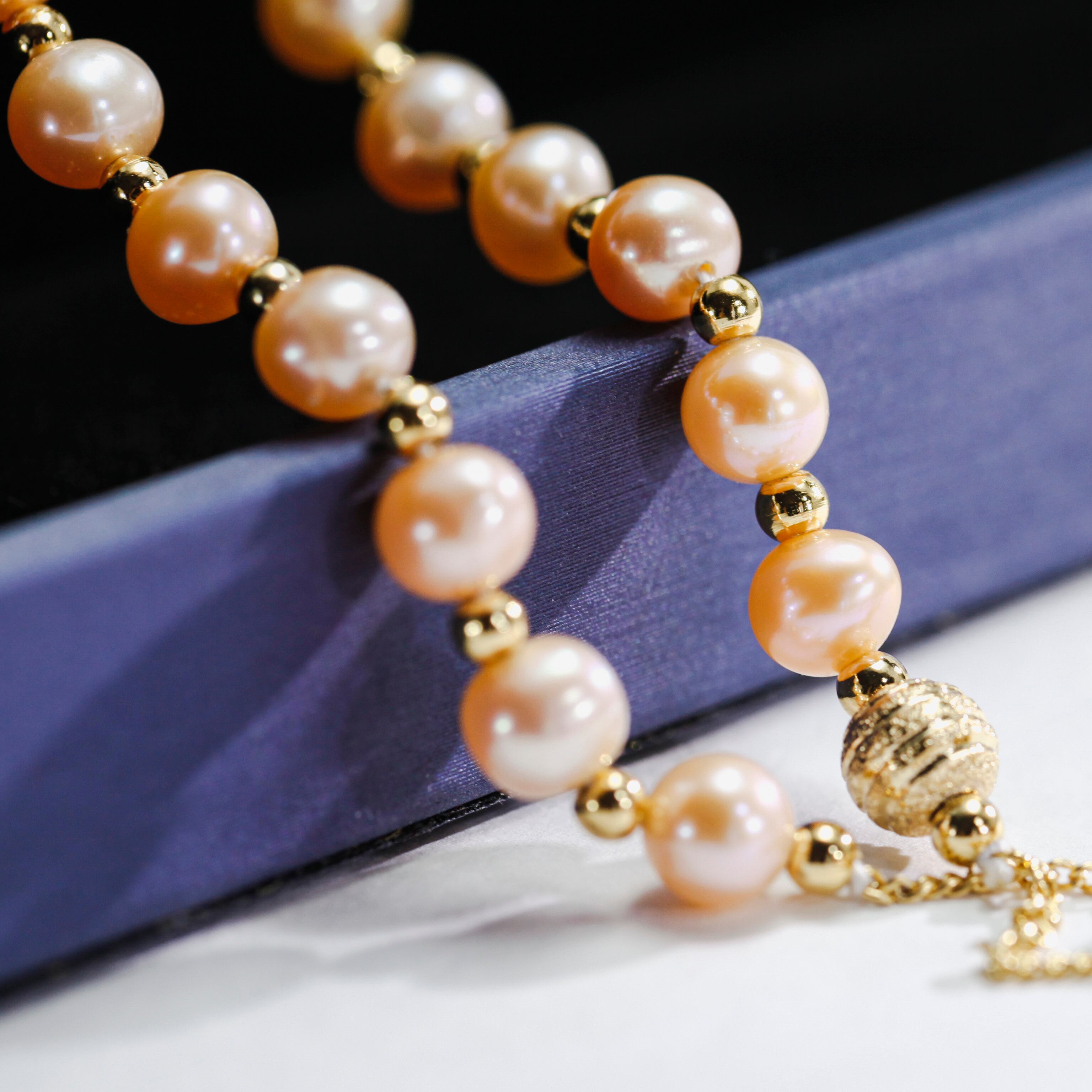 約5.8mmの美しい艶感のオレンジの淡水パールです。
