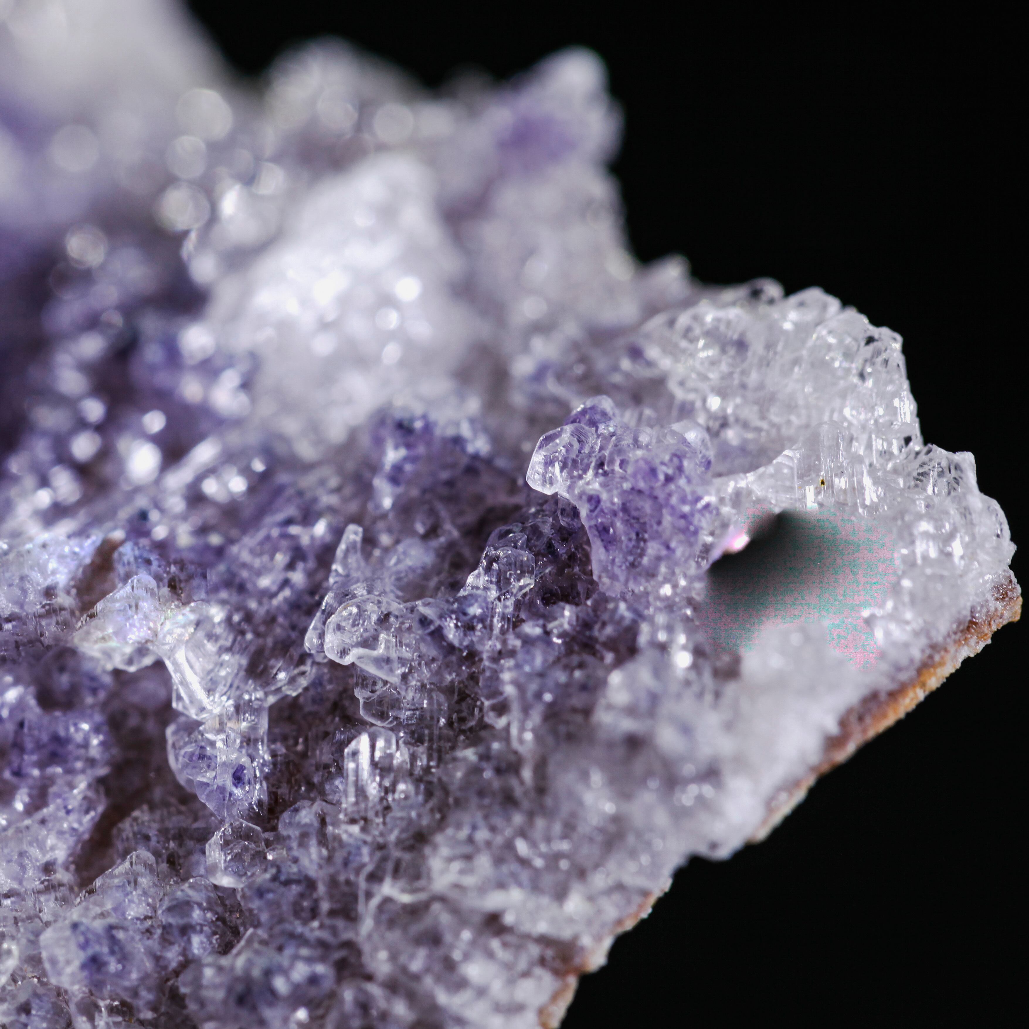 こちらは、母岩にはカルサイトとイットロ蛍石が共生しています。 キラキラのカルサイトに、薄いパープルのイットロ蛍石があります。こちらは希少てユニークな鉱物標本です!