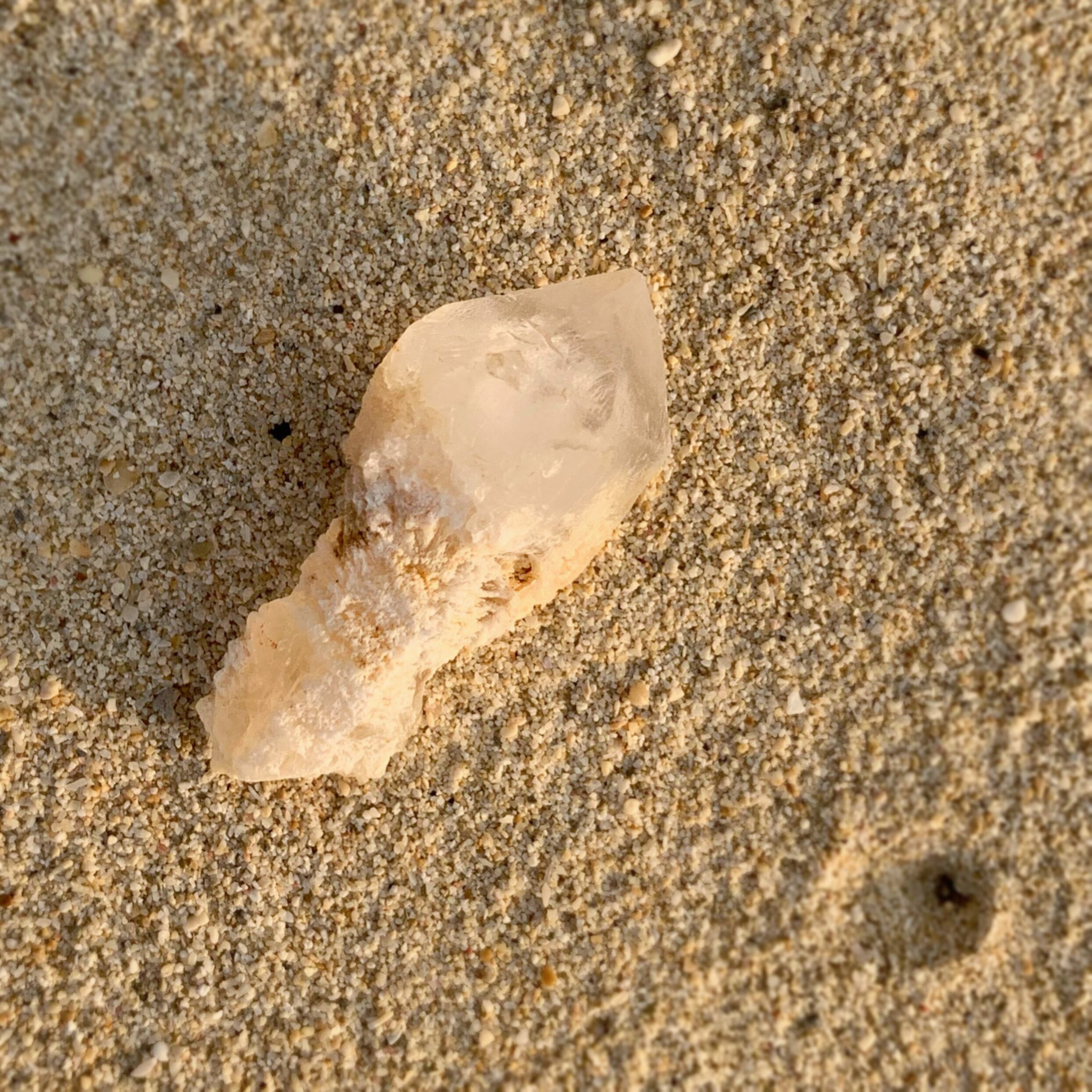 エッチドクォーツ(蝕像水晶)はクリスタルが成長過程で外部から何らかの干渉や影響を受け、表面がボコボコと変化したもの。クリスタル表が溶かされ丸みを帯びた、その独特な姿はとても個性的で、この蝕像に一目惚れしてしまいました。とても神秘的ですよね。