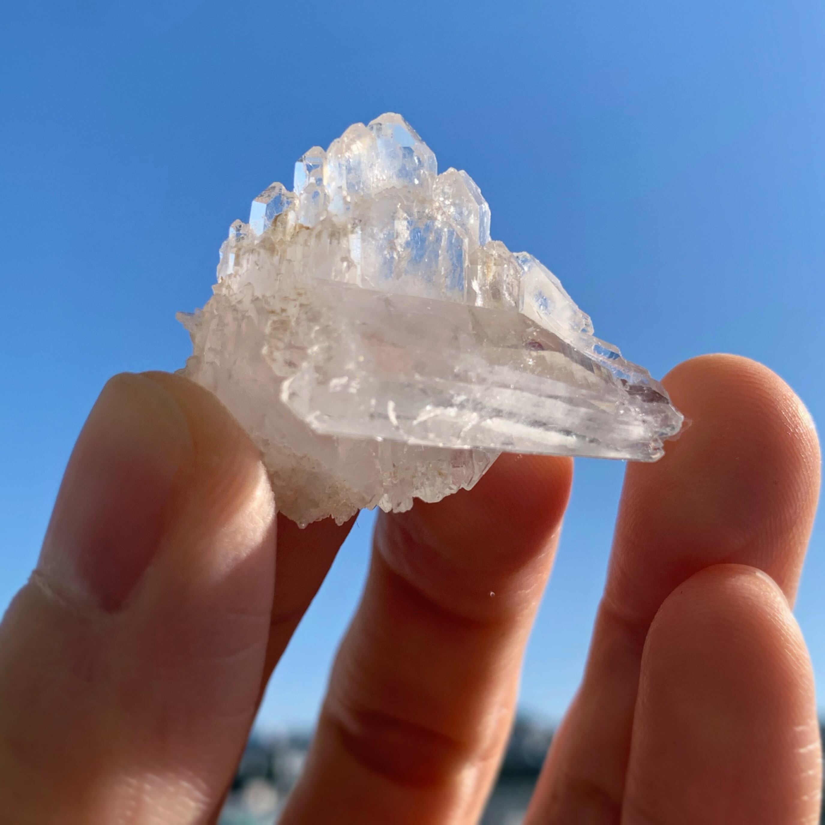 希少価値の高い照り艶良く、綺麗なファーデンクォーツ クラスターは、氷のような美しさを纏い、横に刻まれたものバーコード、虹もある、神聖な輝きを放ちます。