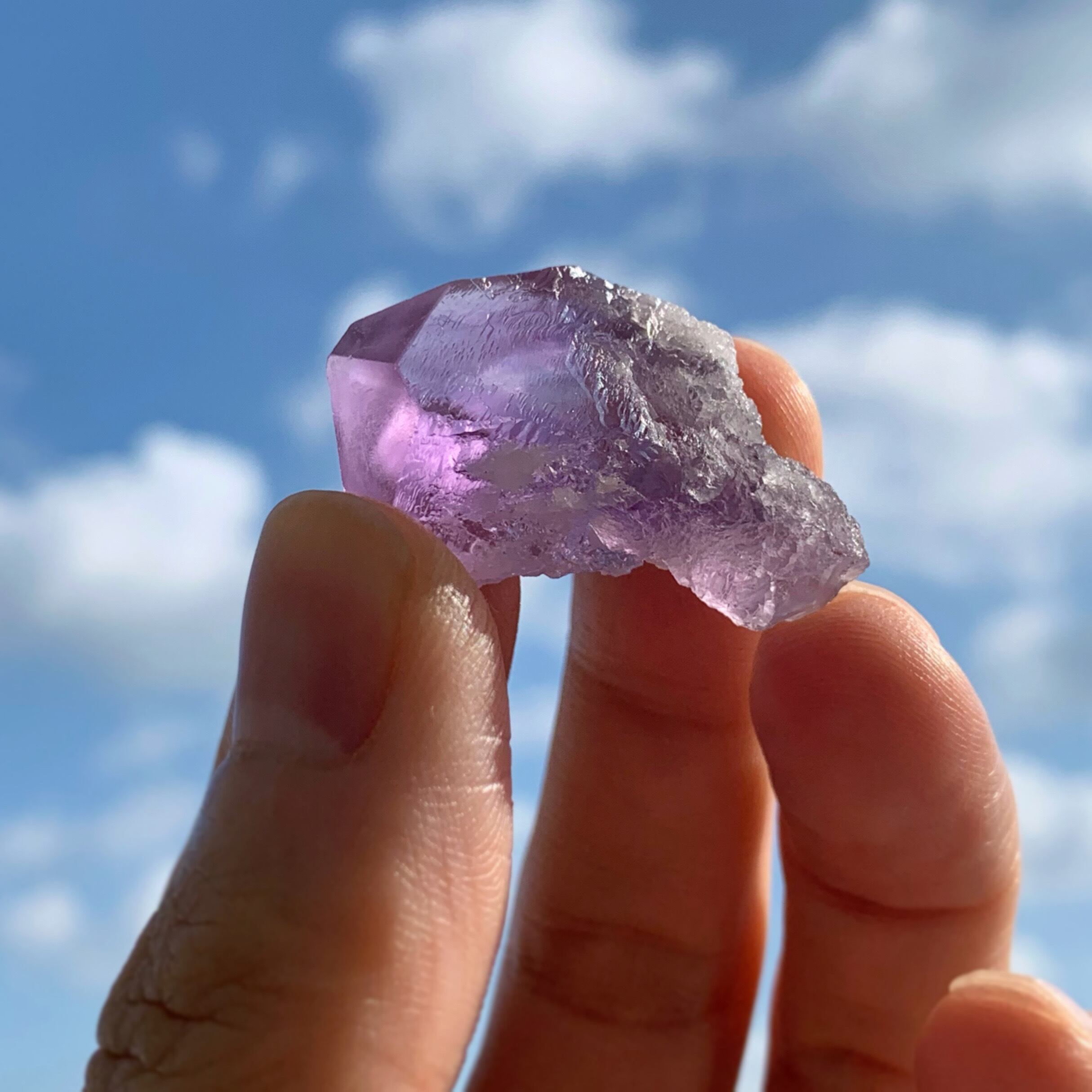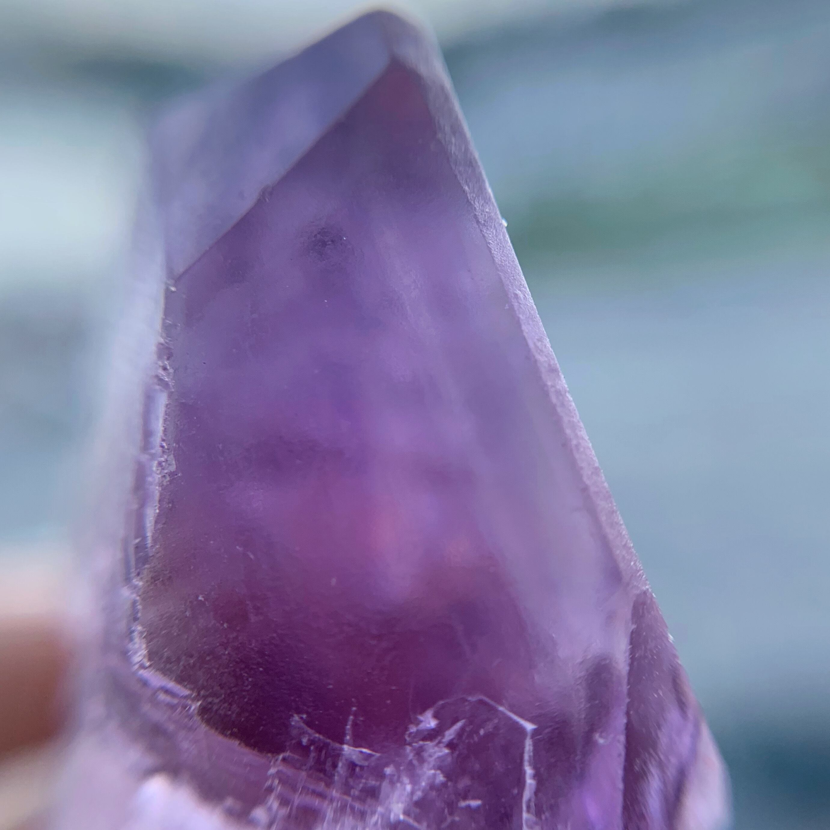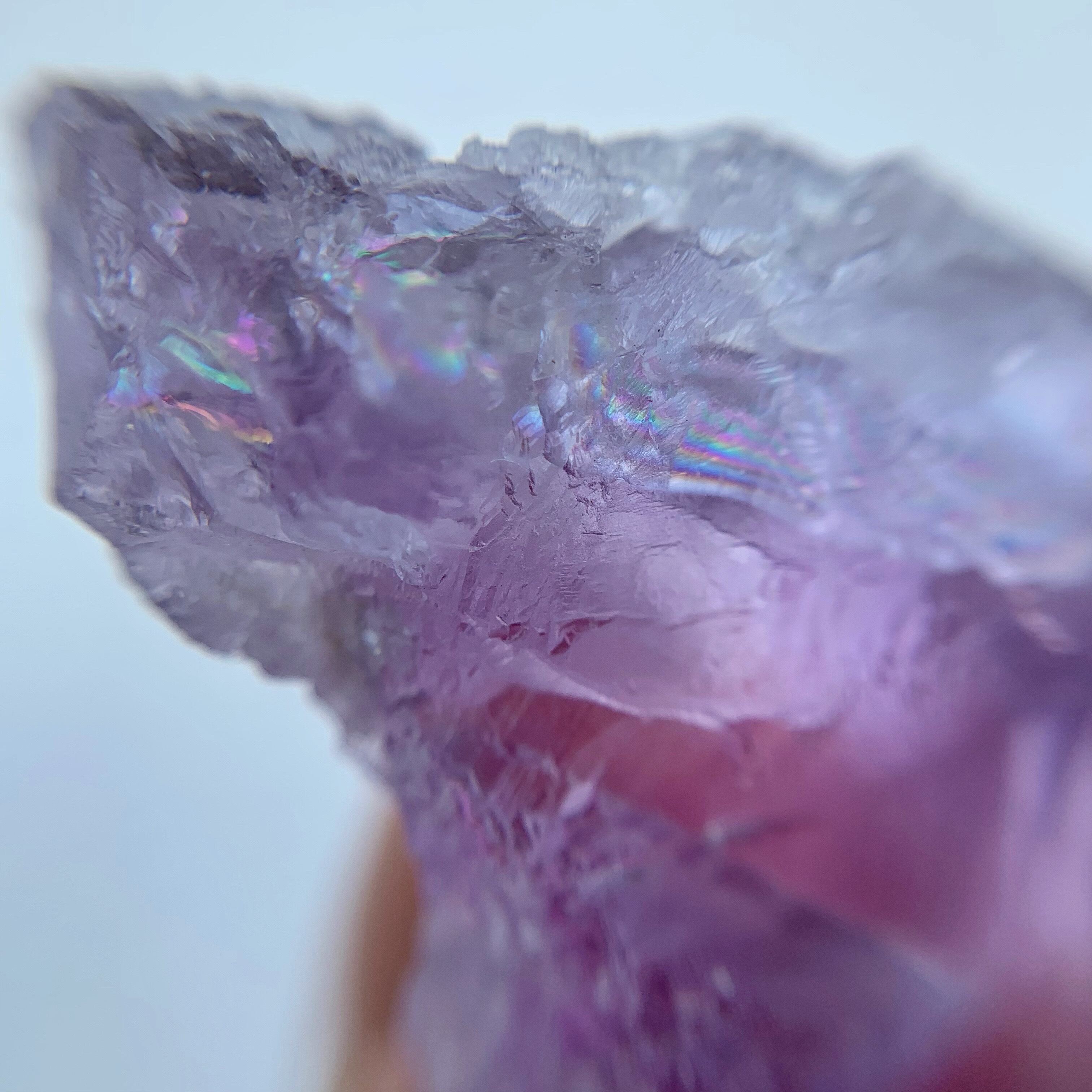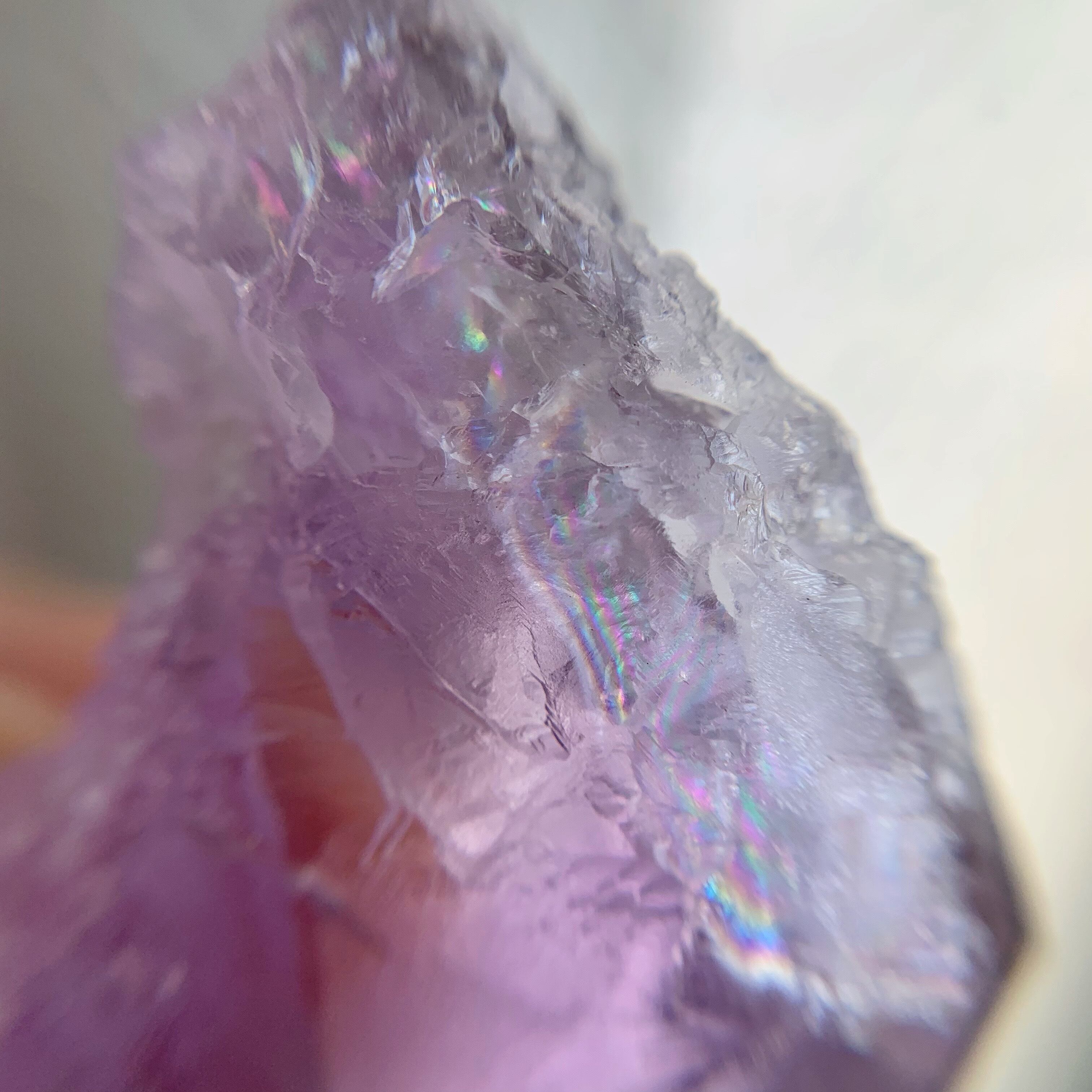 透明感拔群のアメジスト原石,虹がありますので、光の下にキラキラした。