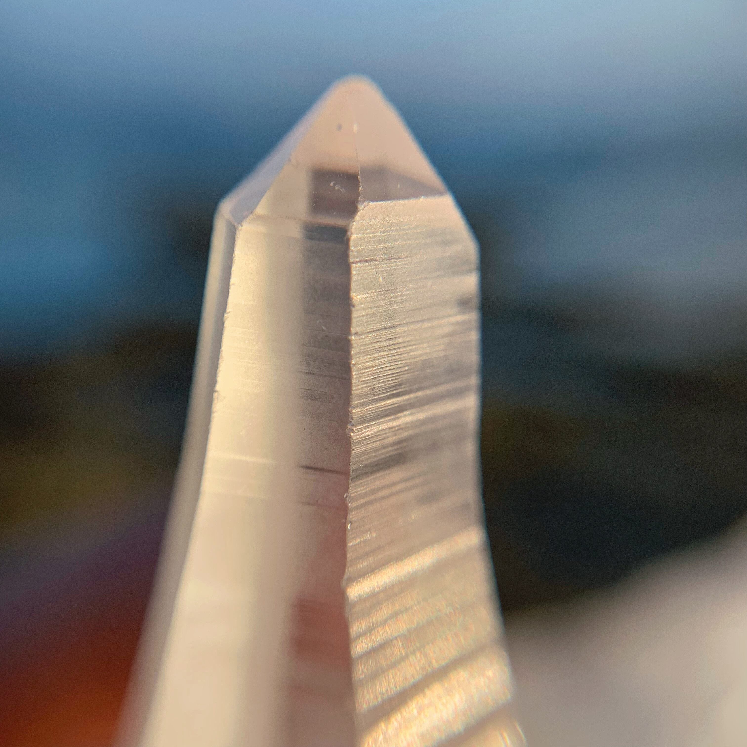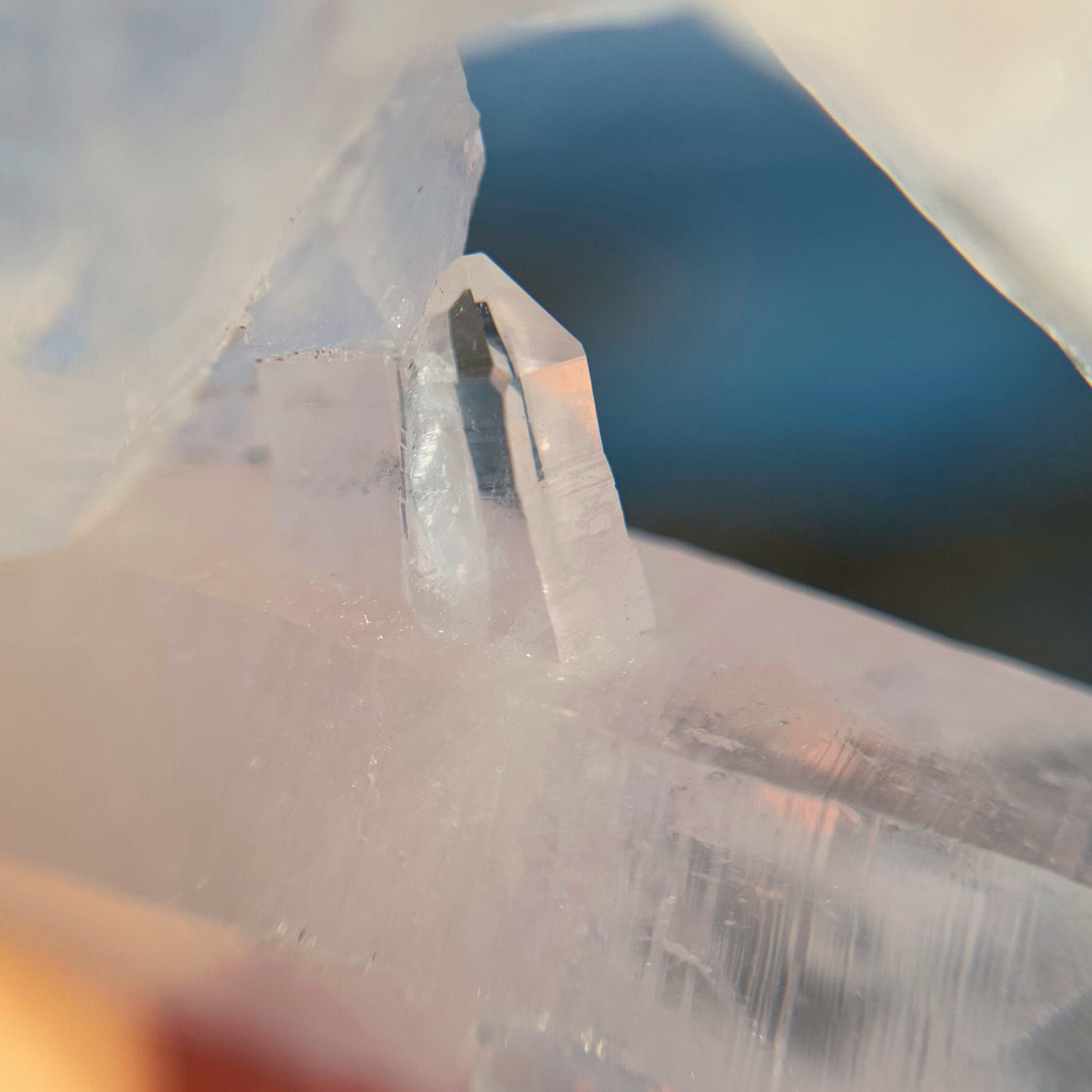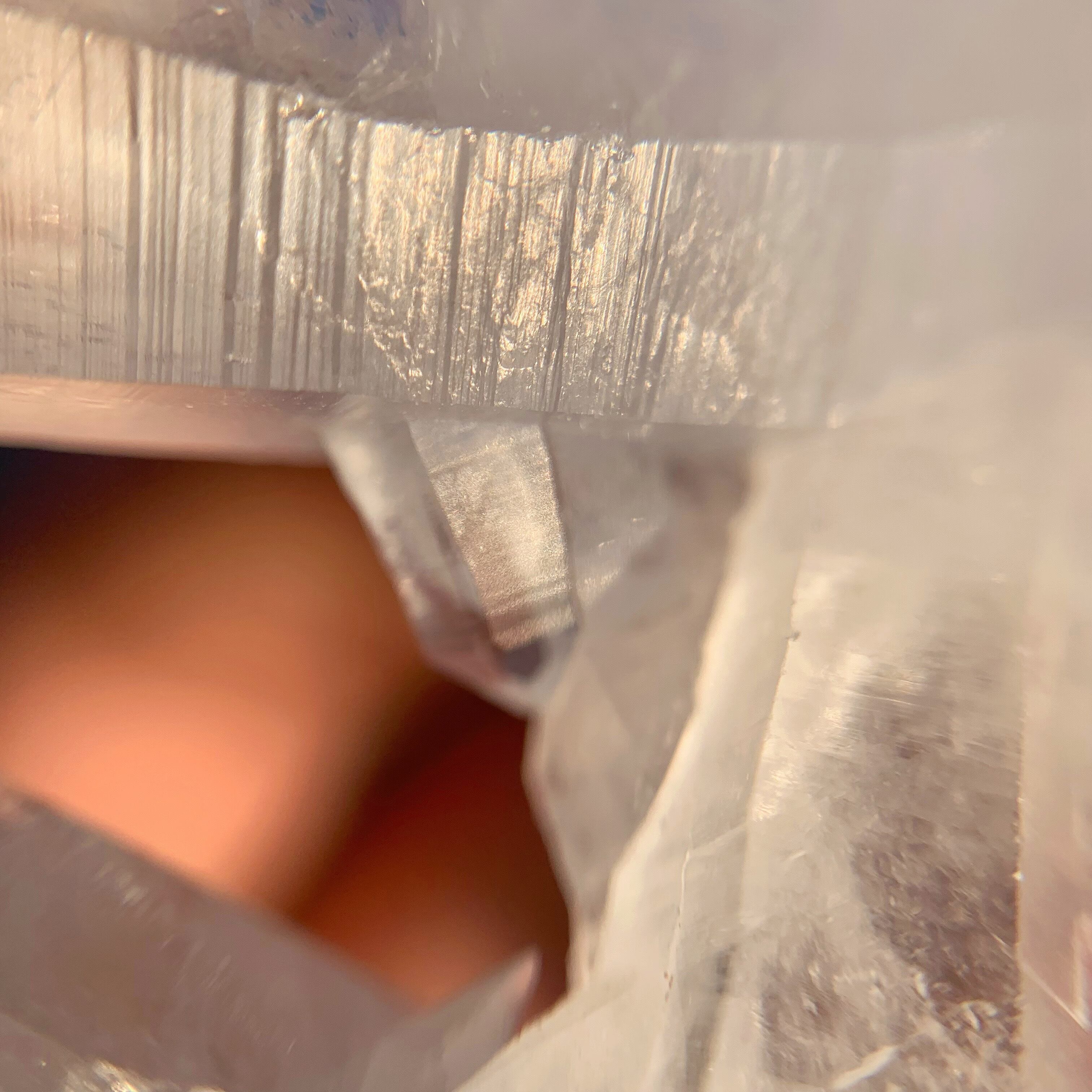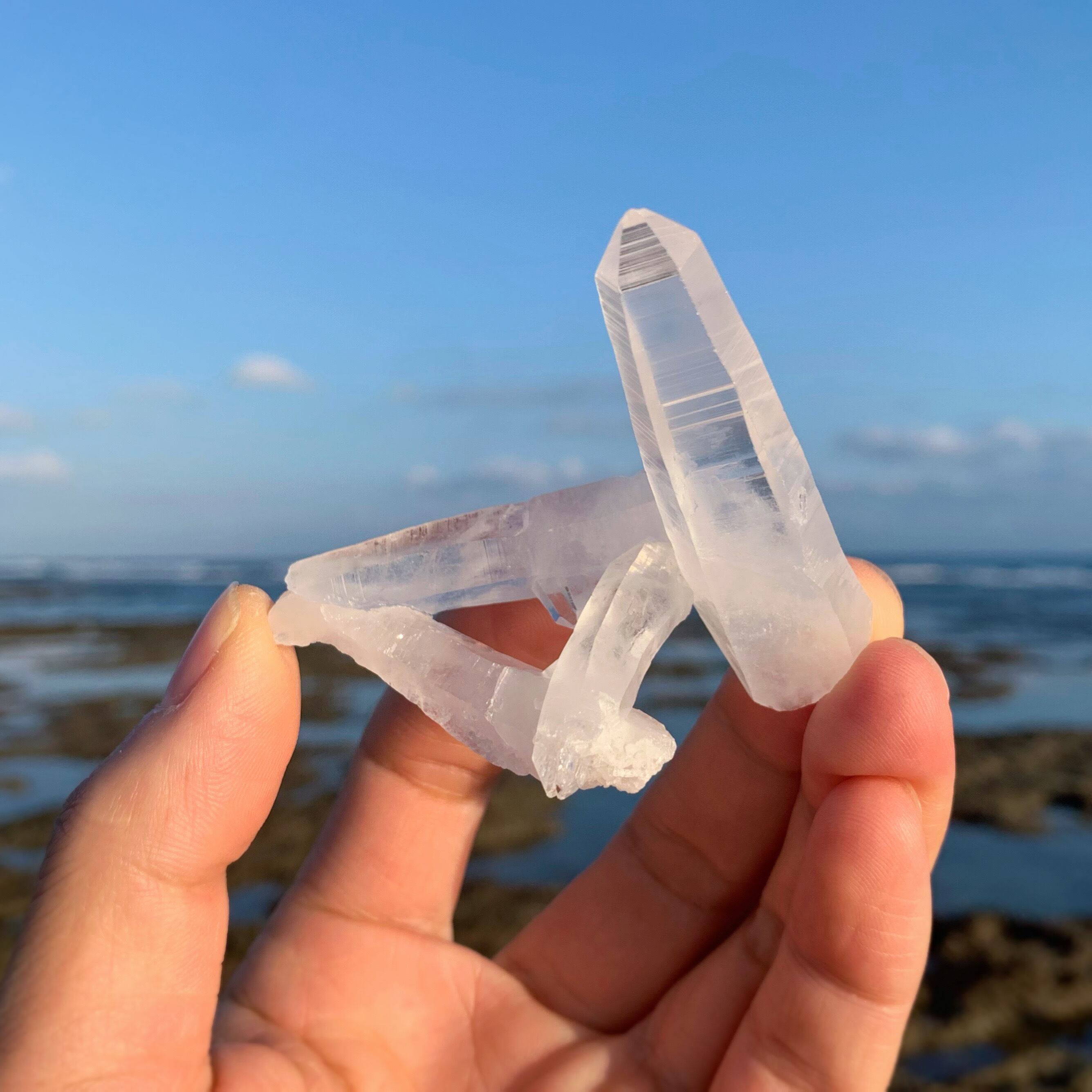 希少な透明度が高い照り艶良く、綺麗なレムリアンシード(クリスタルクォーツ)です。こちらクォーツの底には3本のクォーツが1つ三角形のベースにつながっていて、しっかりと置くことができます。とても希少です!氷のような美しさを纏い、神聖な輝きを放ちます。