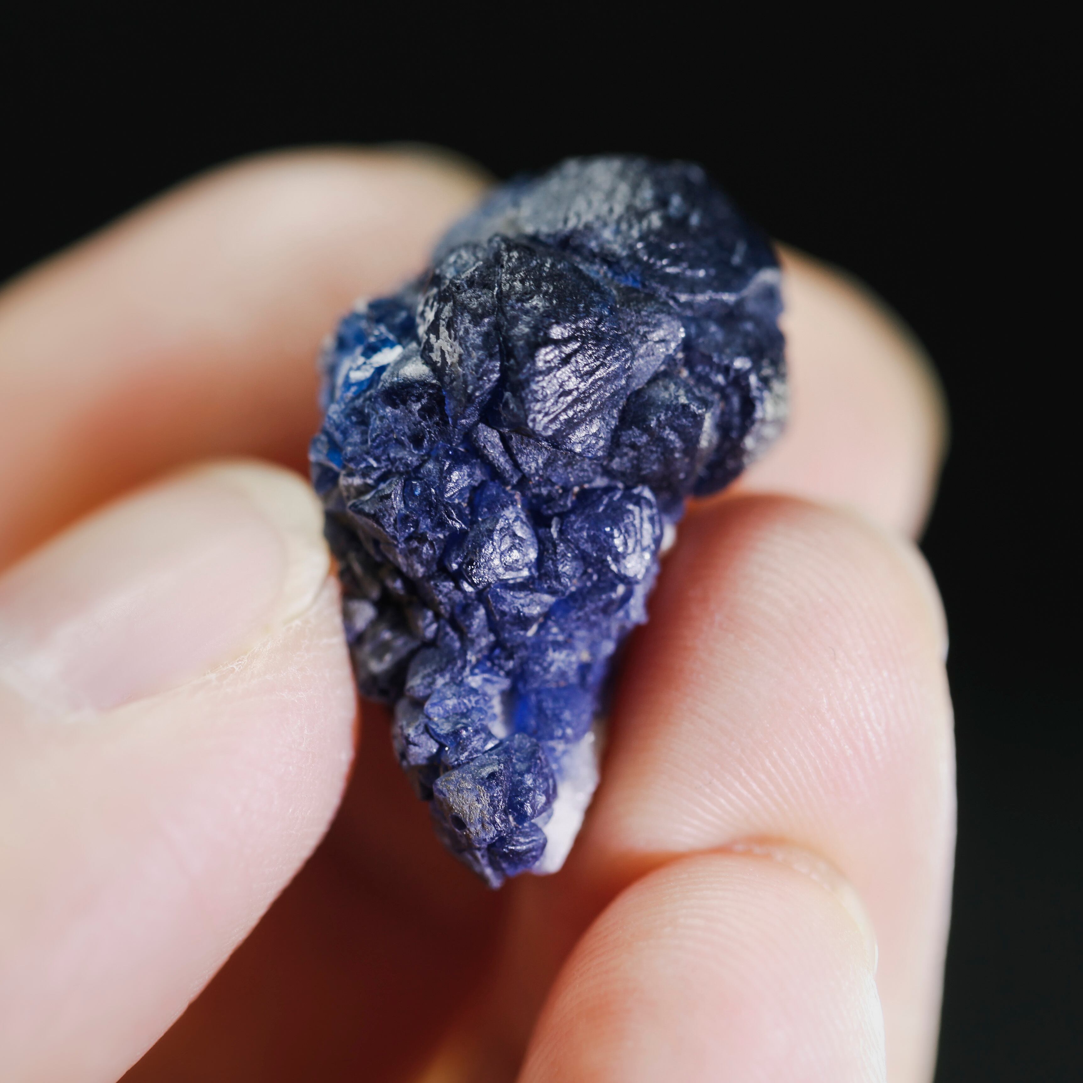こちらはとても希少な濃いアオズミ色のフローライト原石です。テリが非常にクリアでも強い良結晶が見られる景色と。自然光下で青墨色があります、強さの光下、深い青が透過光で美しいの色合いになります。色々な角度から楽しめる鉱物標本です。