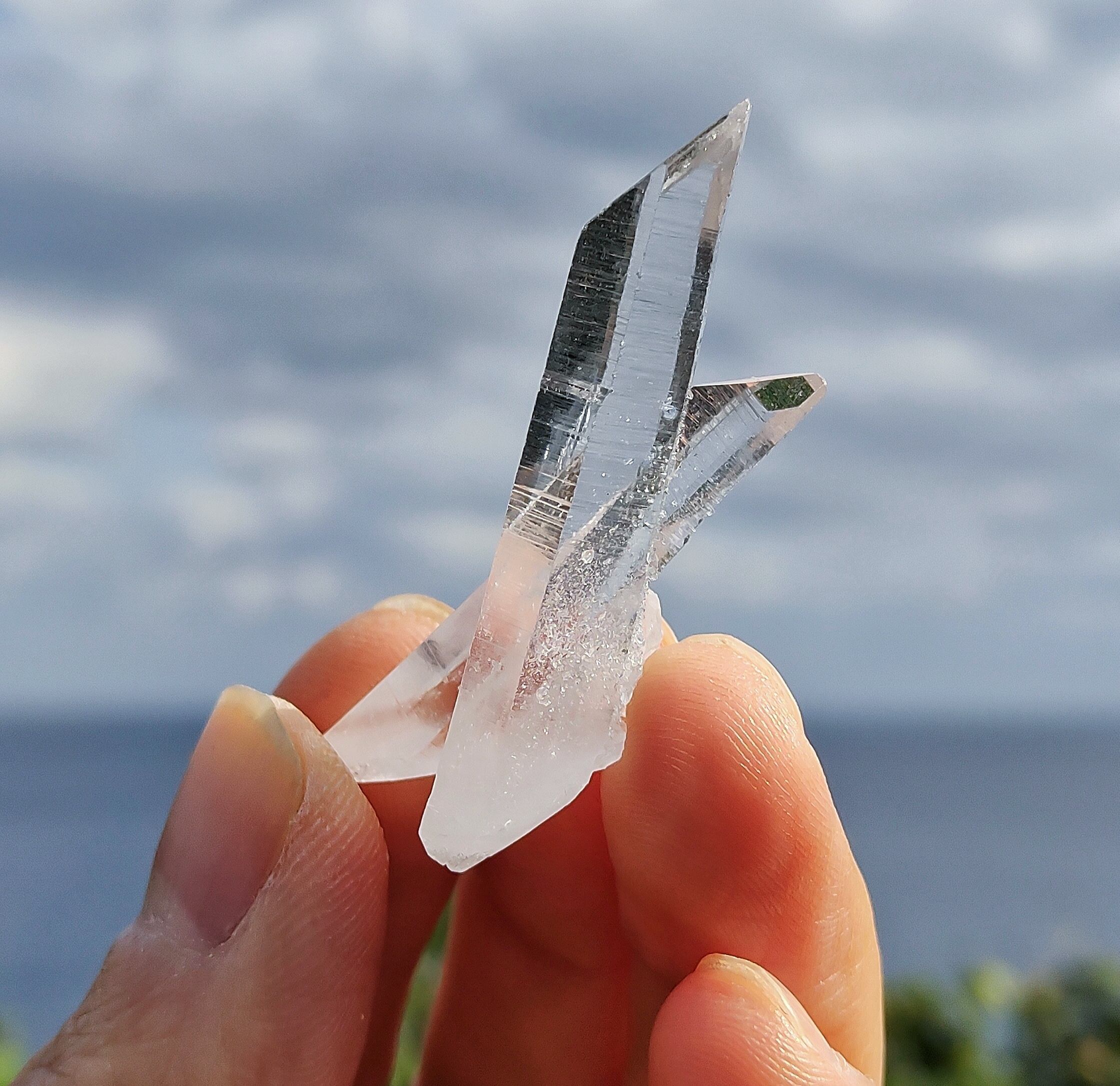 希少な透明度が高い照り艶良く、ダンボルトのレムリアンシードは、氷のような美しさを纏い、水晶の先端部に大きな面が八角形になっがあります、「グラウンディング」と呼びます。地に足をつける・大地に根ざすという意味を持ち、ヒーリングや瞑想などにも使われる言葉です。大地に根をはり地球との繋がりを深めることでエネルギーを大地と結び付けることができるようになります。