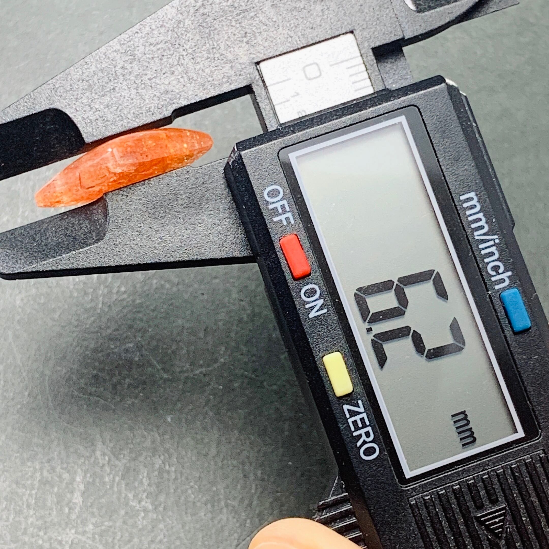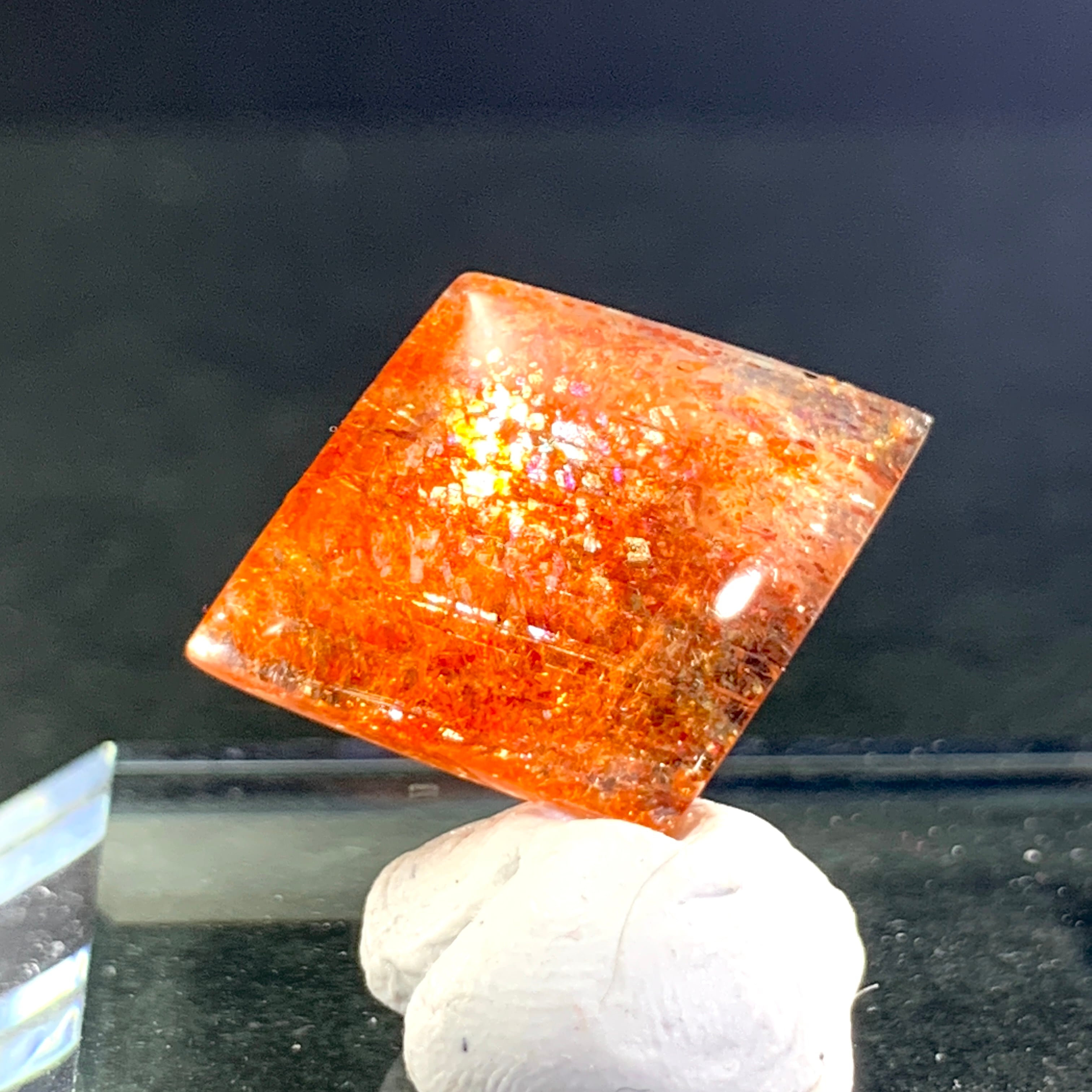 希少な燃える様な赤オレンジ色の菱形の結晶です。アベンチュリンレッセンスがフルに詰まった希少な一品です。