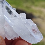 こちらはレムリアンシードセットです。氷のような美しさを纏い、横に刻まれた水晶の成長線であります。锥面には断口がありますが、バーコードがよく見させています。不可思議なも持っているようです。
