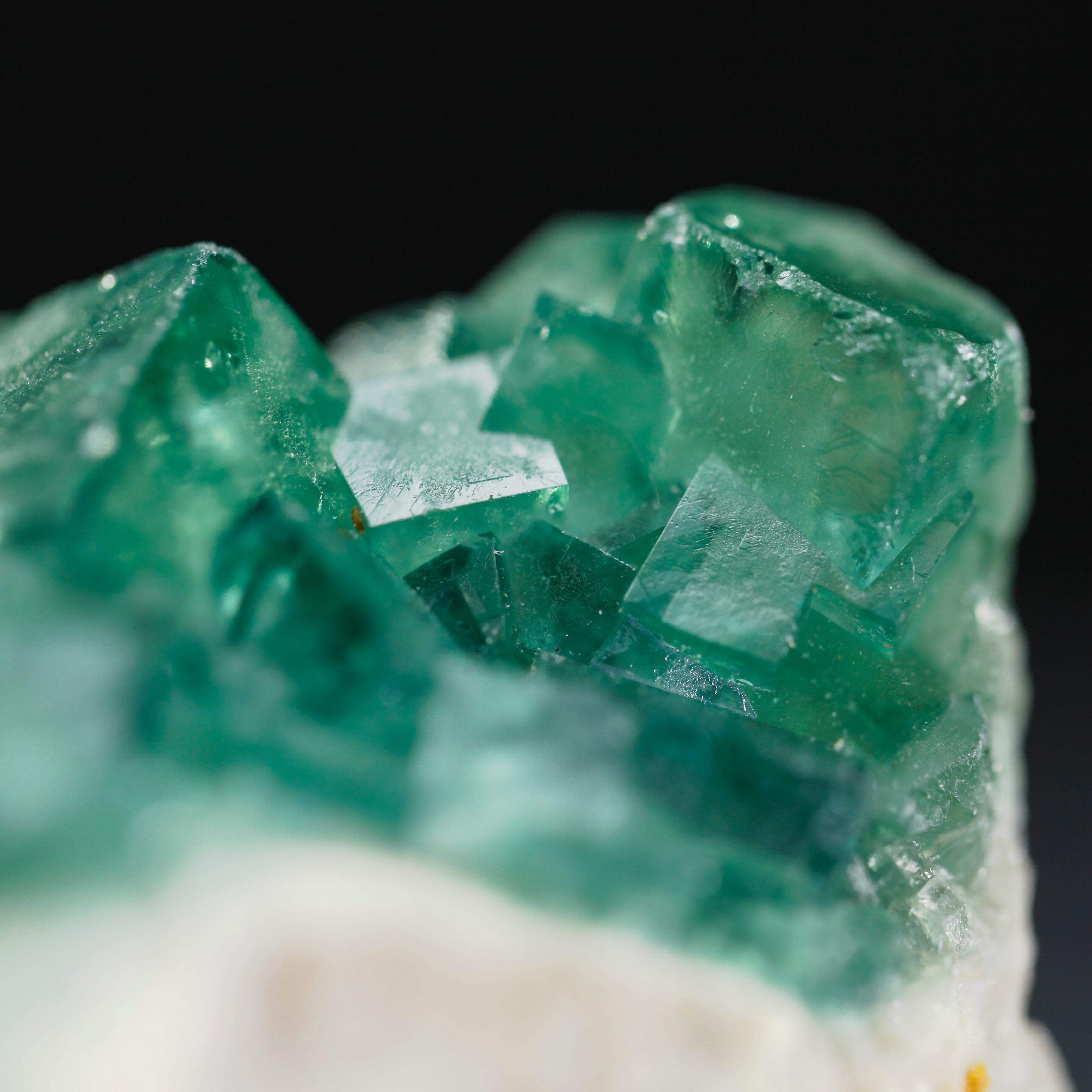 マダガスカル產の母岩に深いグリーンのフローライトが非常にクリアでテリも強い良結晶と、色々な角度から楽しめるフローライトとカルサイトの共生鉱物標本です。非常にユニークな景色があります。