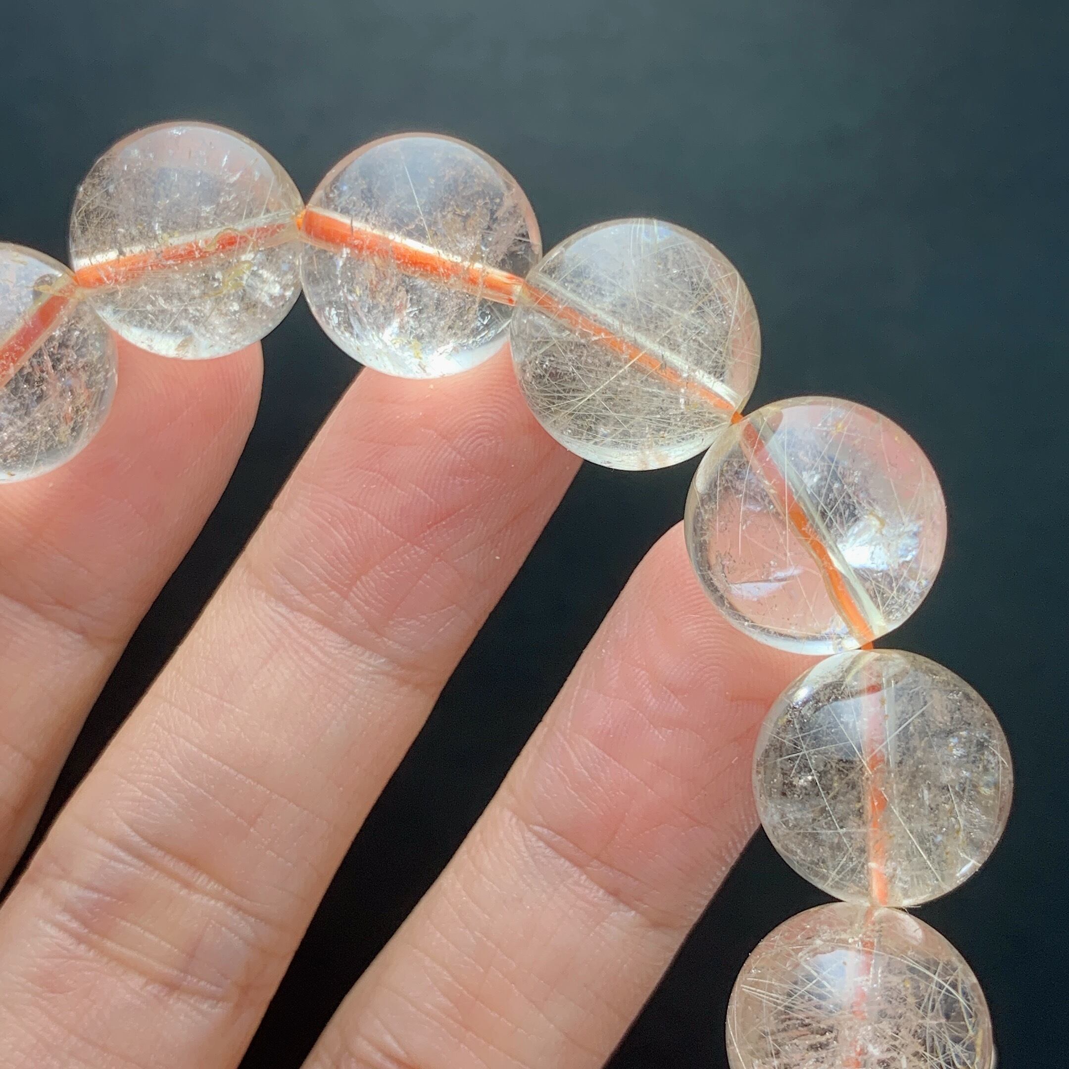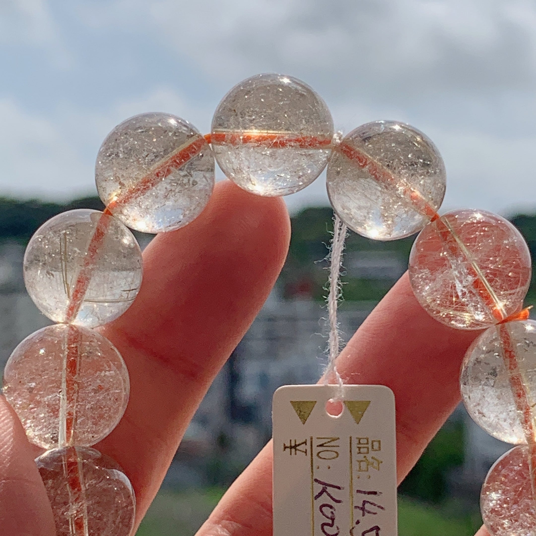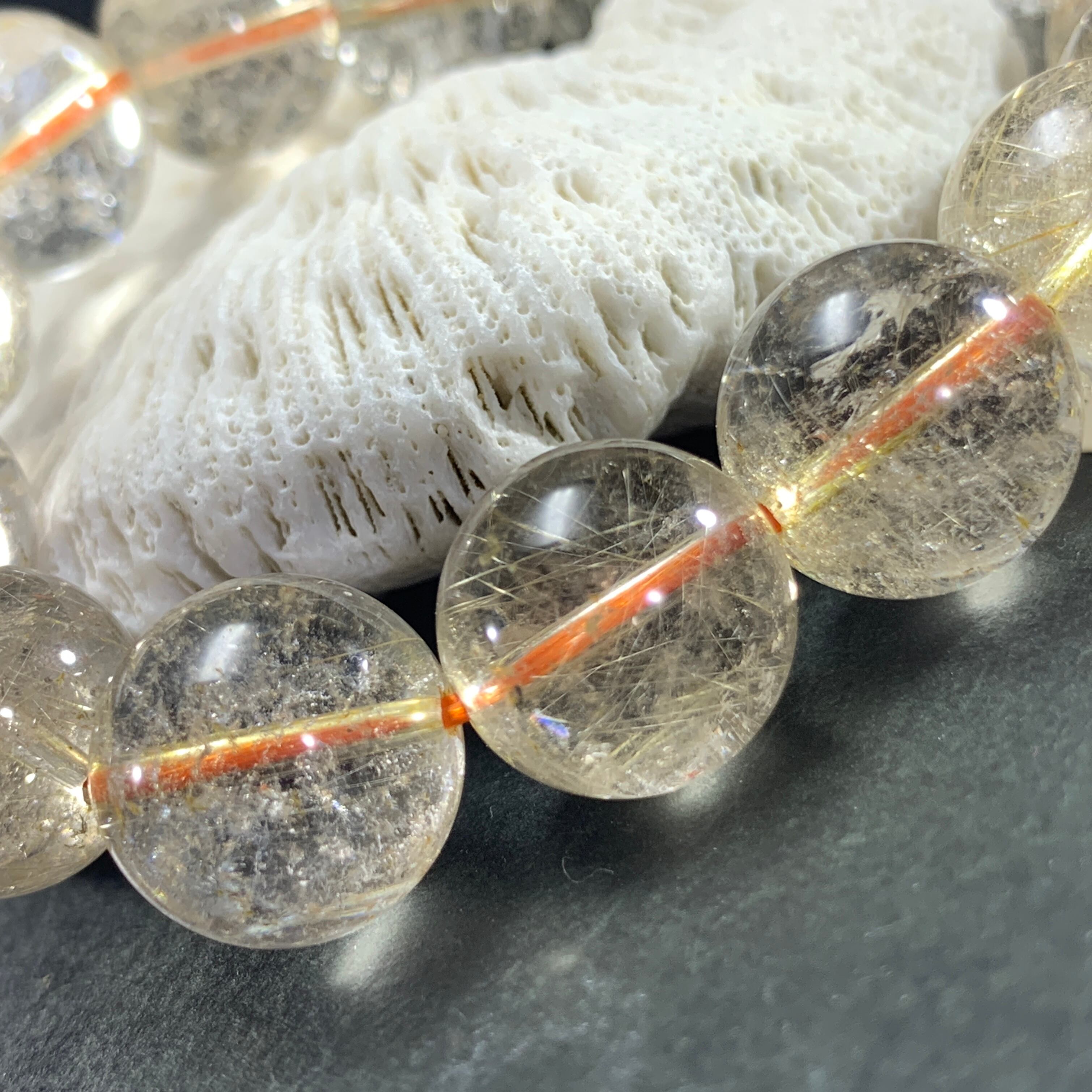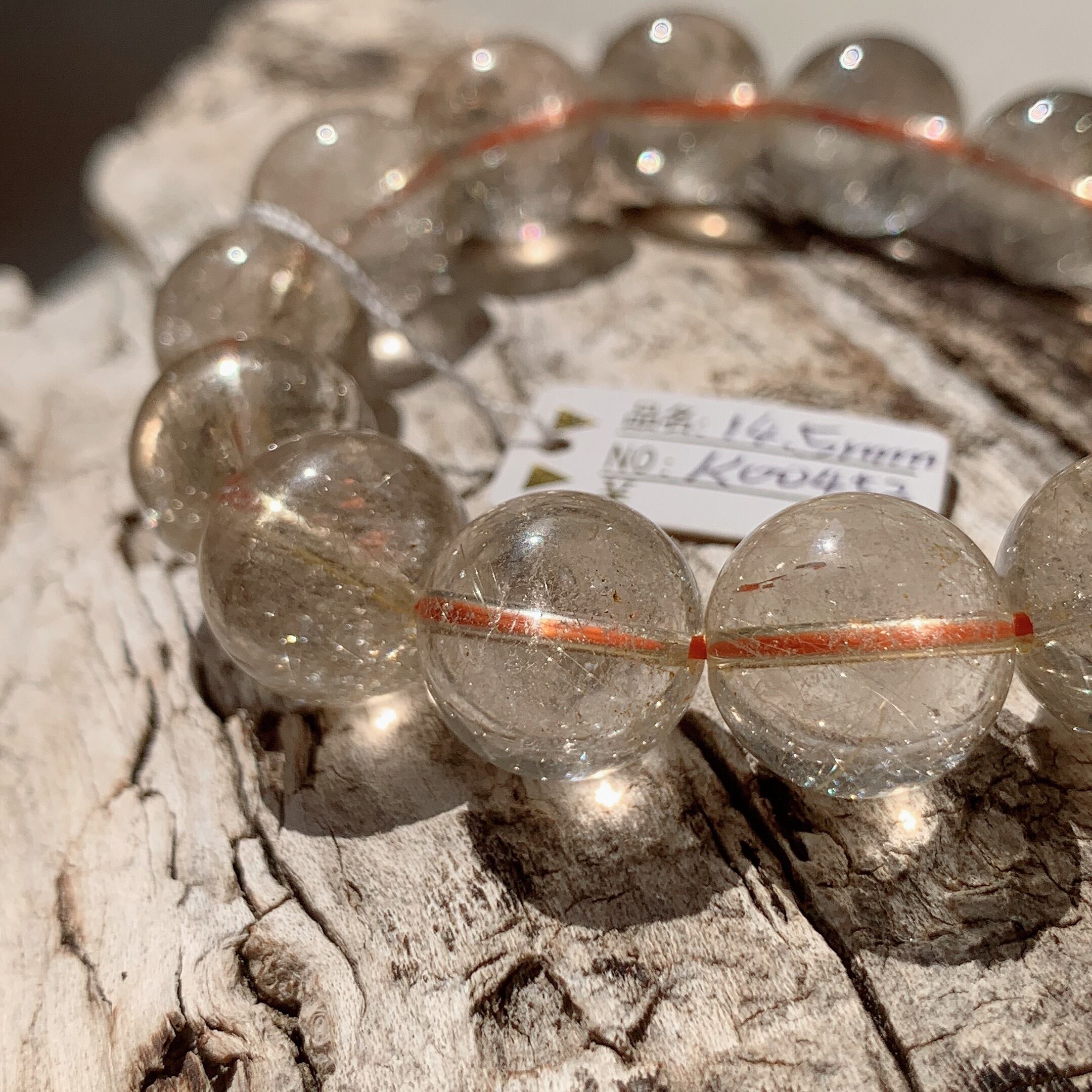 ◆新入荷◆ルチルクォーツ◆大玉◆人气◆透明抜群◆虹◆14.5ミリ K00453 天然石ブレスレット パワーストーンブレスレット