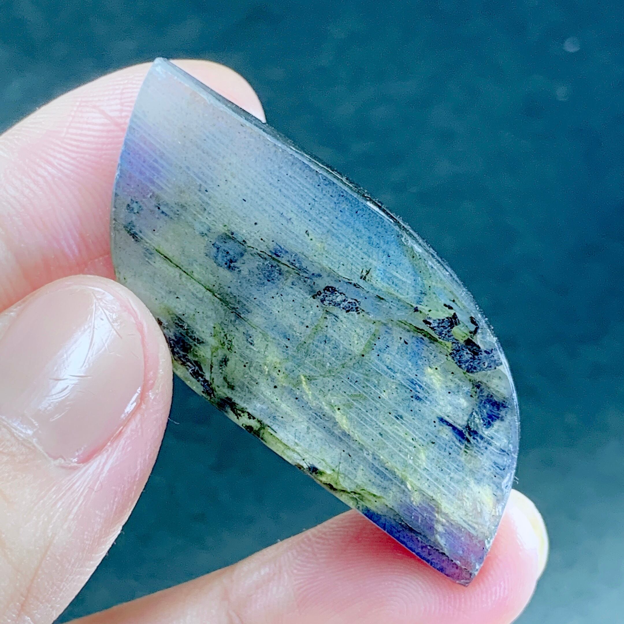 ラブラドライトは本当に魔法にかかった様な美しい光を放ちます❣️目のように似てる、とても希少です。自然光の下が青色が、強光が透けると、全然違う光景になって、ゴールドを見えて、不可思議なを持っているようです。