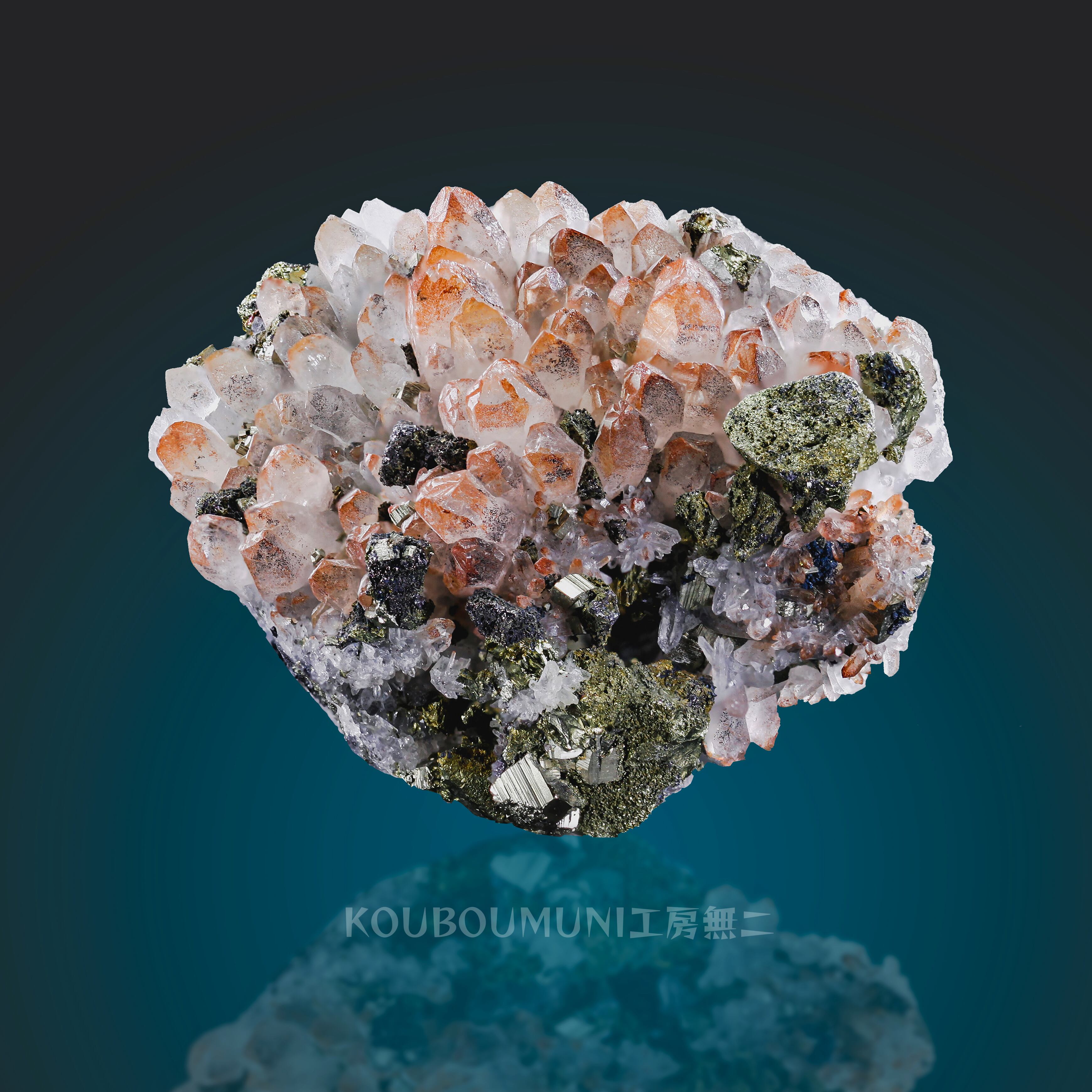 レッドフェザーレイクスクォーツ周りにキラキラしたパイライトがはめ込まれています、バランスが美しい水晶です。縮小版のガーデンのように。