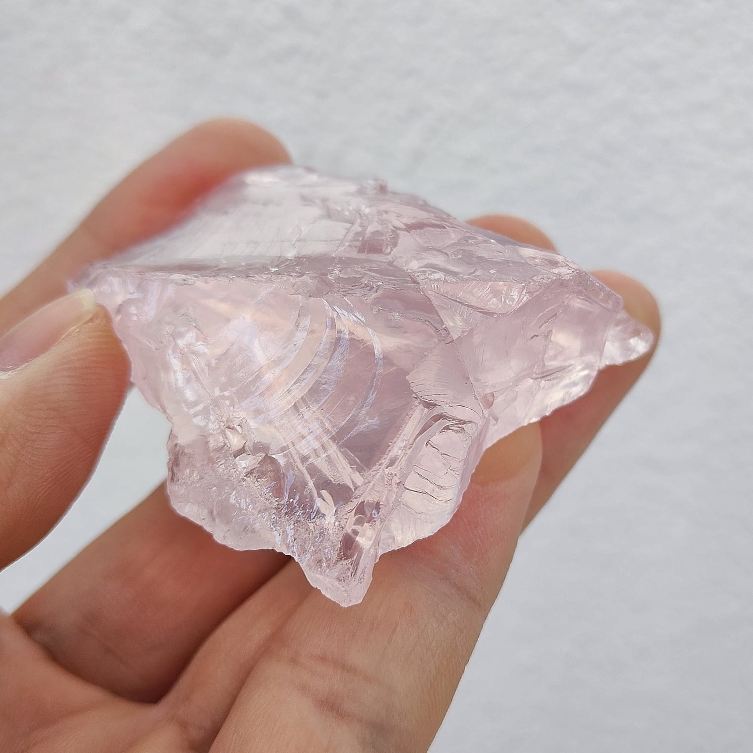 美しくやさしい輝きで透明感あふれるピンク色のローズクオーツで、女性に大人気のパワーストーンです。瑞々しい色合いと石から伝わる優しいエネルギー。内包物がなくて、透明度が高く手作りのゼリーの様な子。