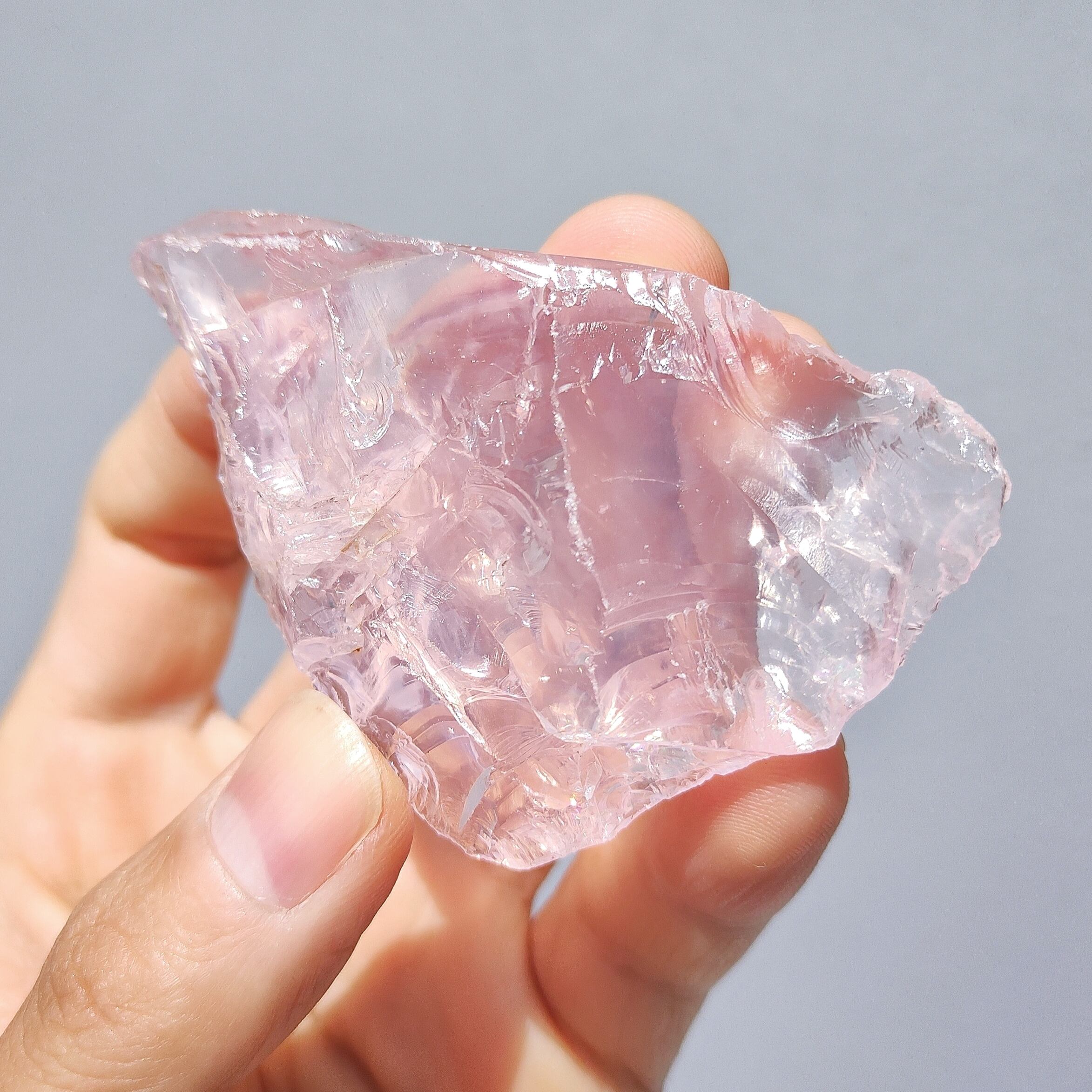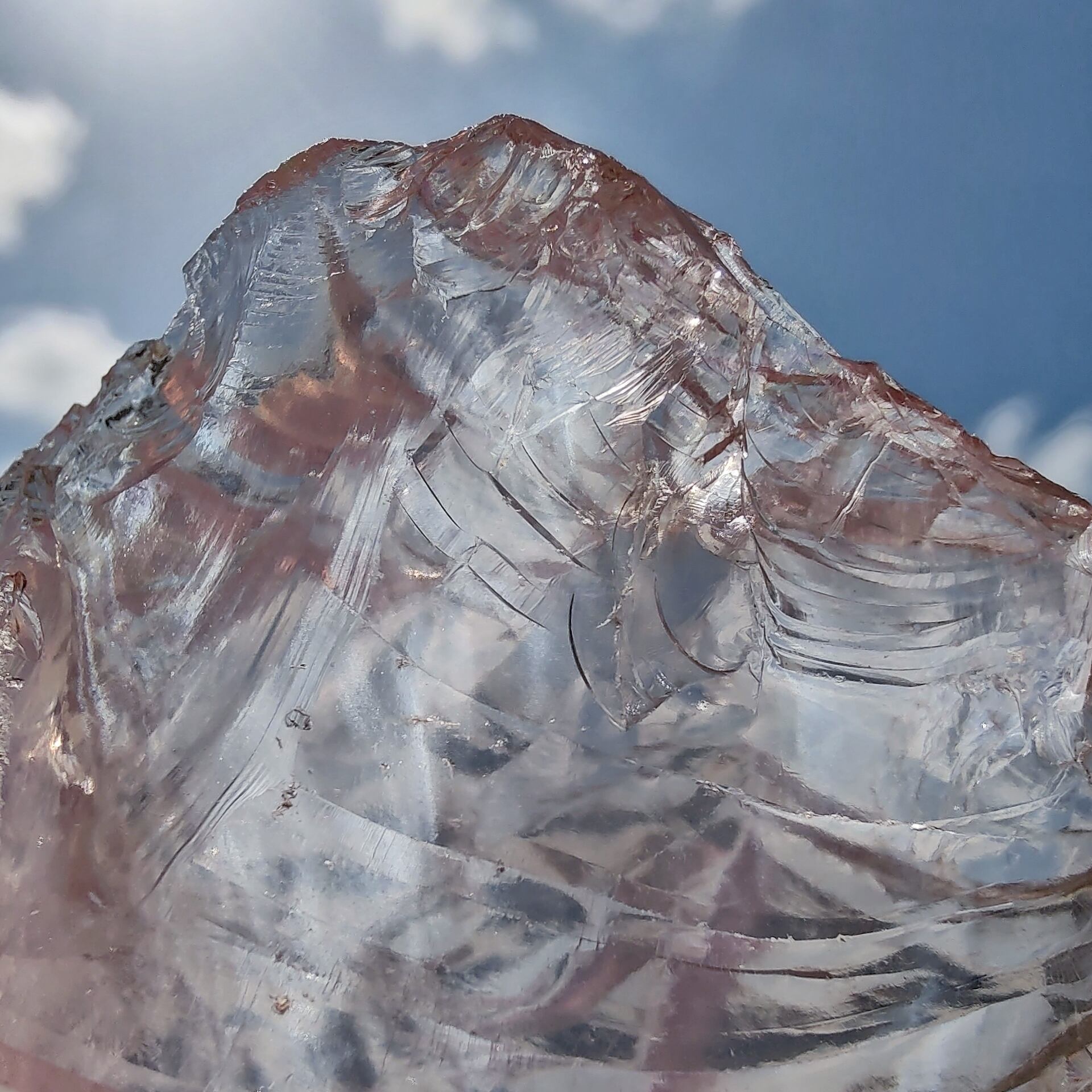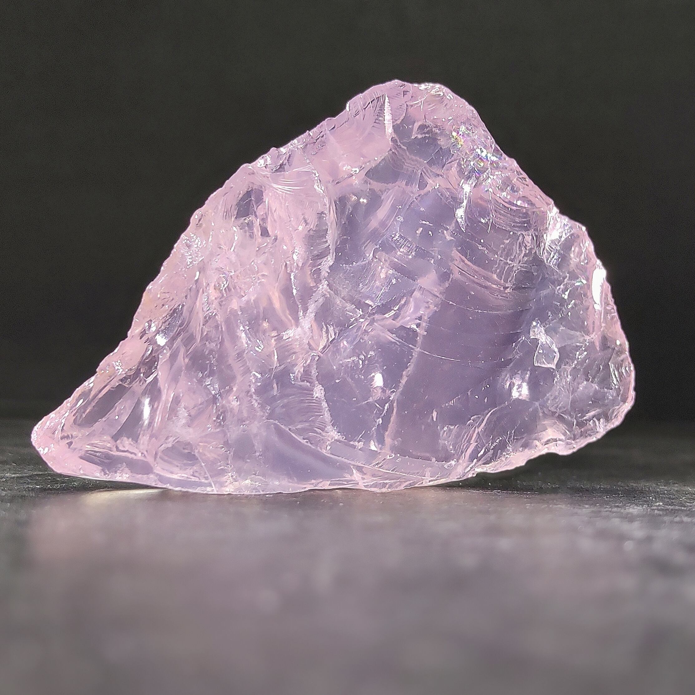 こちらのローズクォーツは大きな貝殻の形をした虹がある。持ち歩いたり、握ってエネルギーを感じる。