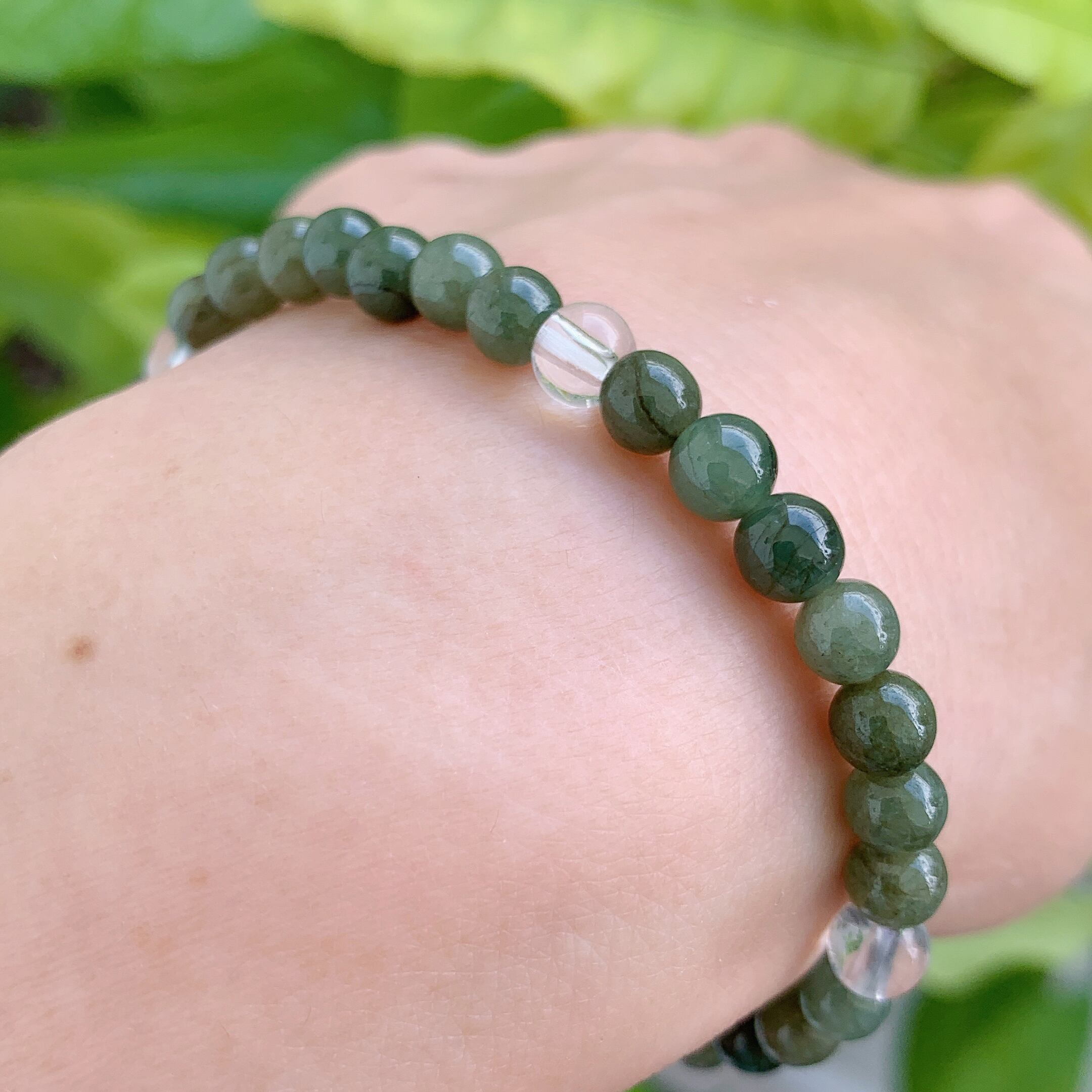 翡翠 (Jade)とは「5月の誕生石」なので5月生まれの方への誕生日プレゼントにピッタリ。組み合わせる石によって、メンズにもレディースにもデザインできます。こちらブレスレットの組み合わせ(丸の翡翠、5ミリ、竹の節の翡翠、5*9.6ミリ、クリスタル(本水晶)、5ミリ)