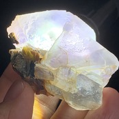 こちらは希少なフローライト、ゴールド雲母と共生した鉱物標本です。薄いパープルコアが透過光で美しいの色合いが確認出とっても綺麗です。裏のゴールド雲母の魅力は唯一無二感のあります。