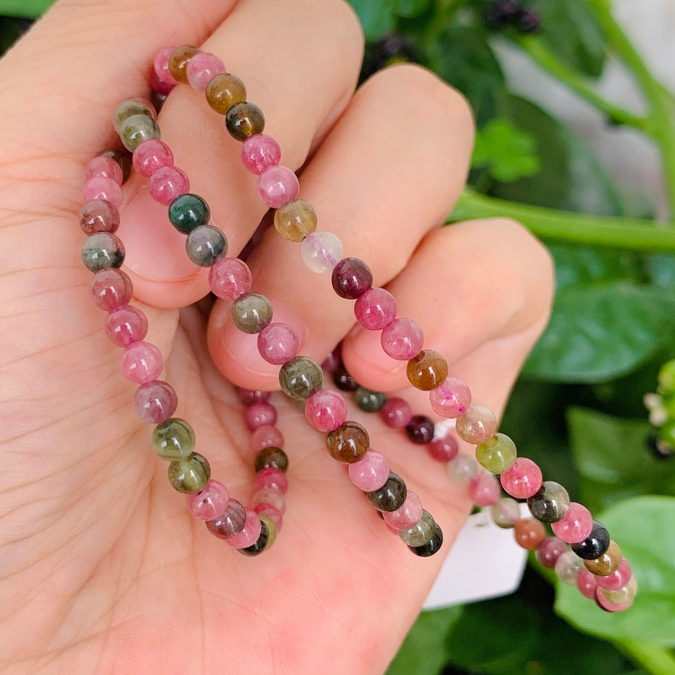 マルチカラートルマリン。濃厚のグリーン、イエロー、ブラウン、ブラック、ブルーのトルマリン、とても多種多様な色彩を持ち、カラーバリエーションの豊富さはパワーストーンの中でも随一と言われております。とっても可愛いブレスレットになりますね。