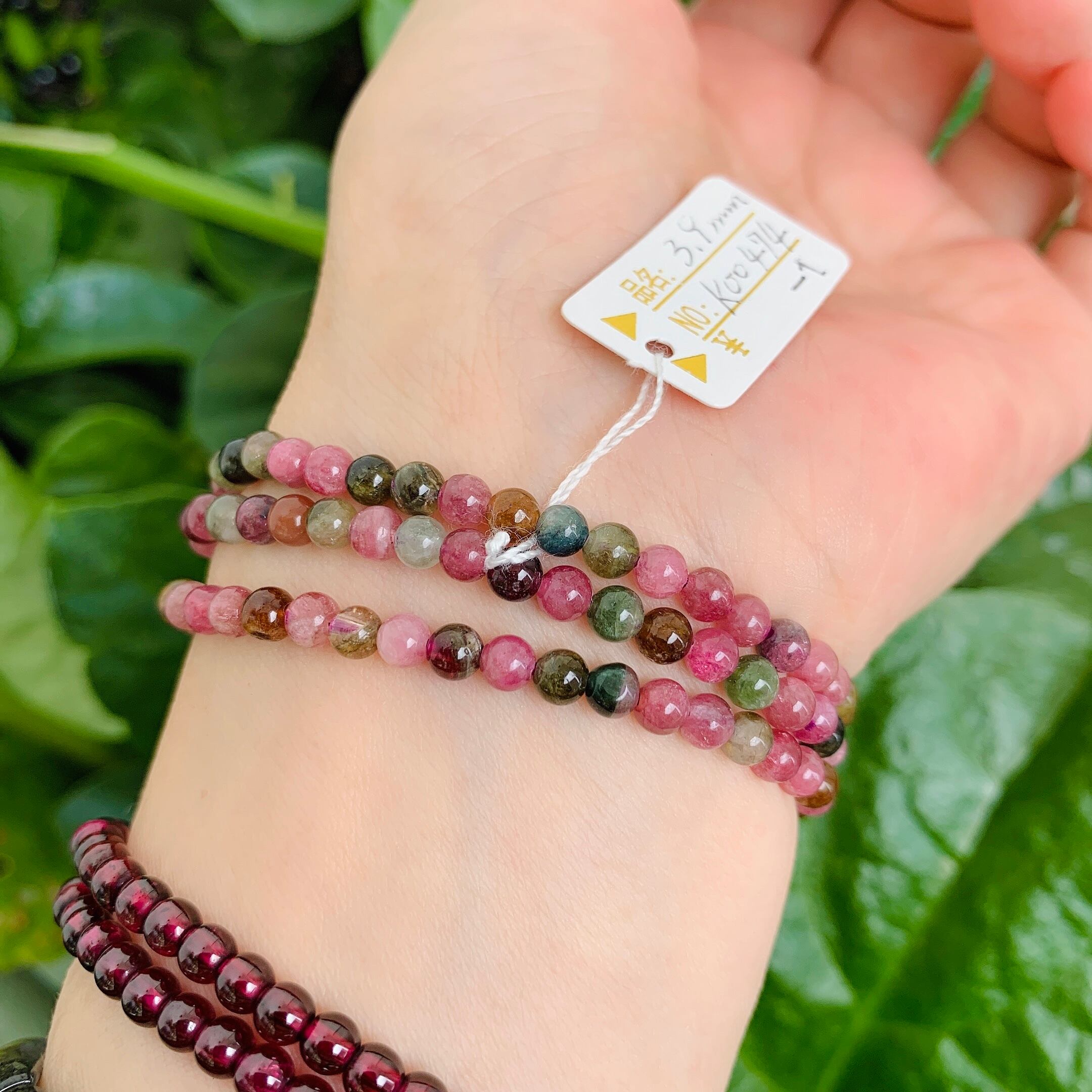 トルマリン 三連 4mm K00474-1 天然石ブレスレット パワーストーンブレスレット