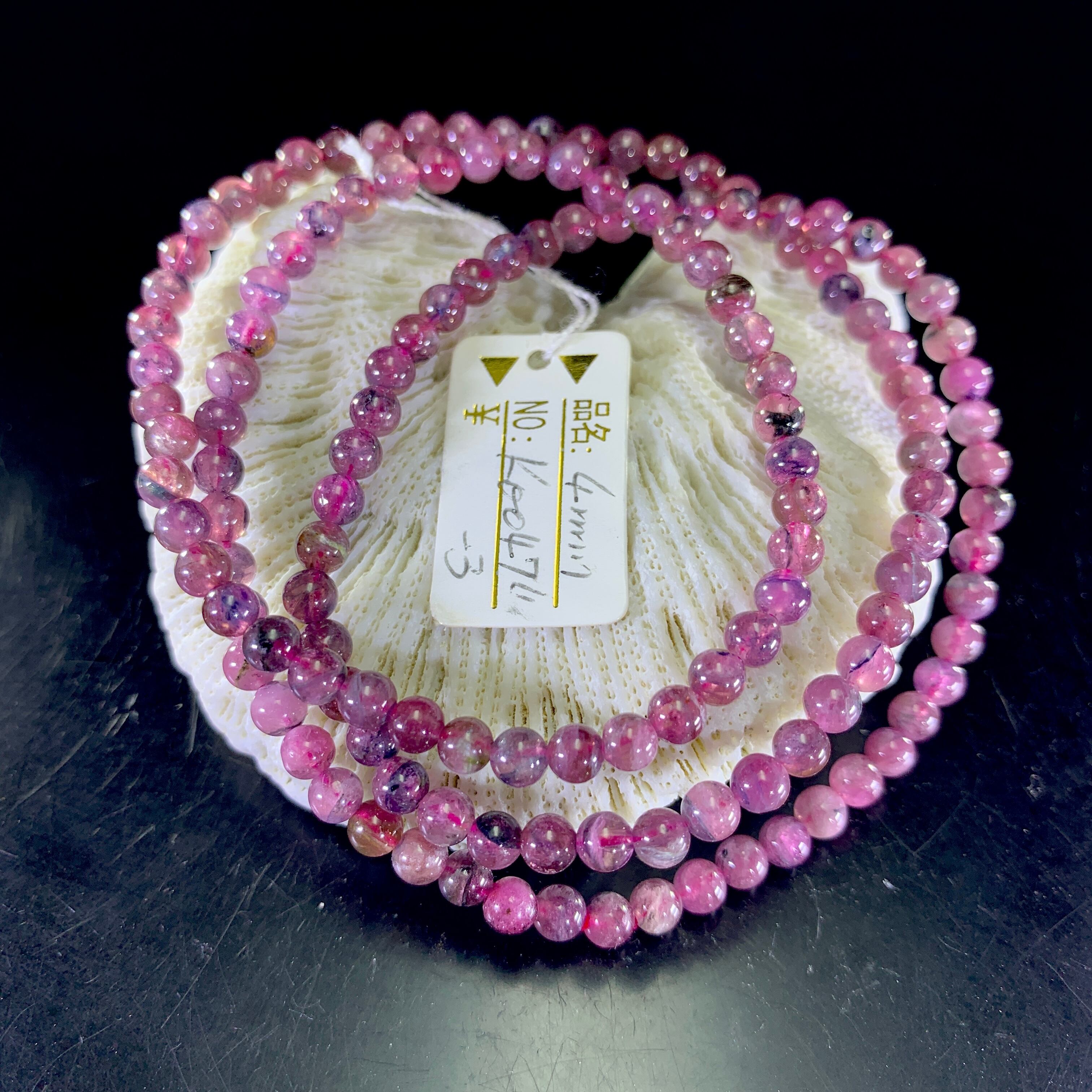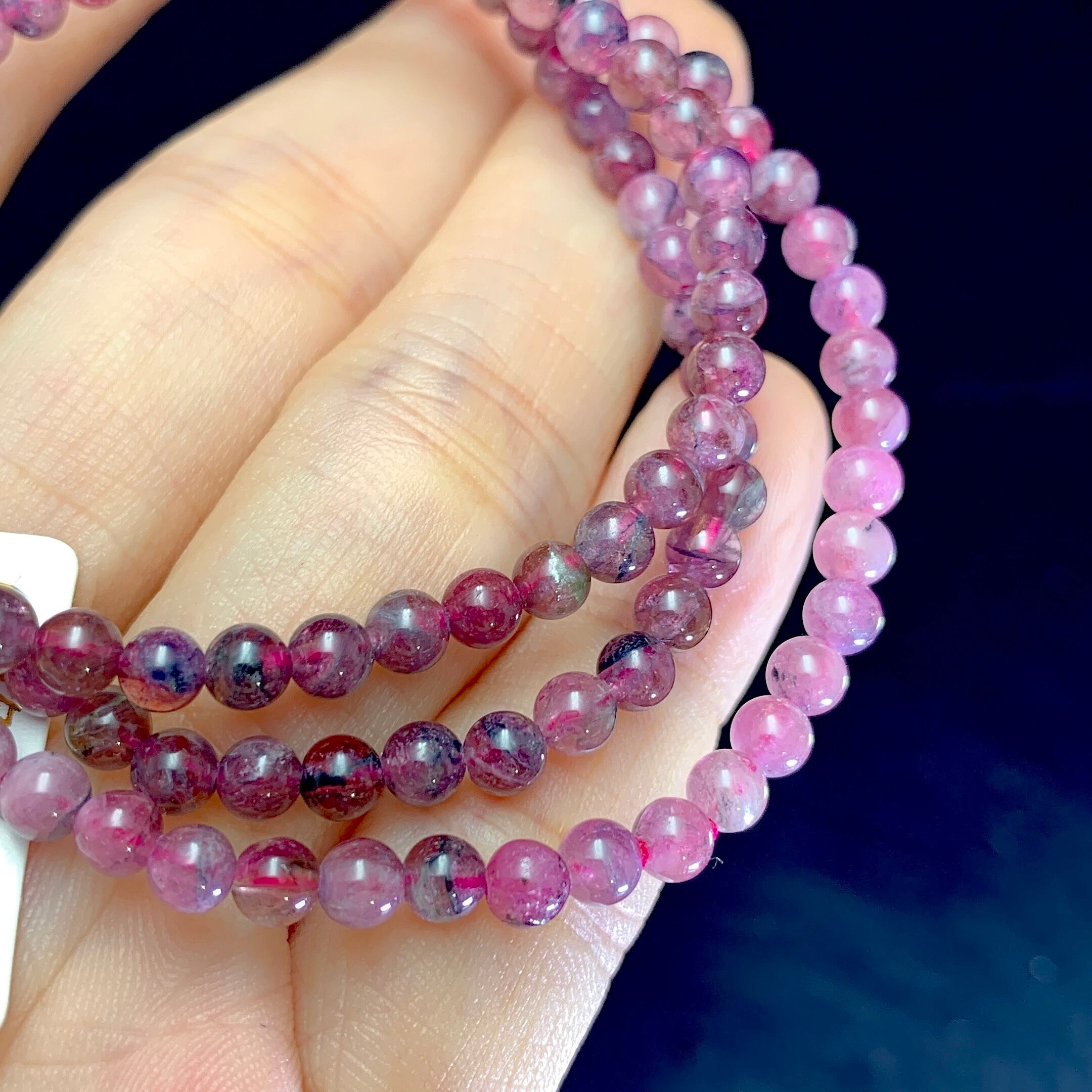 ◆希望の光◆シベライト(パープルトルマリン) 三連 4mm K00474-3 天然石ブレスレット パワーストーンブレスレット